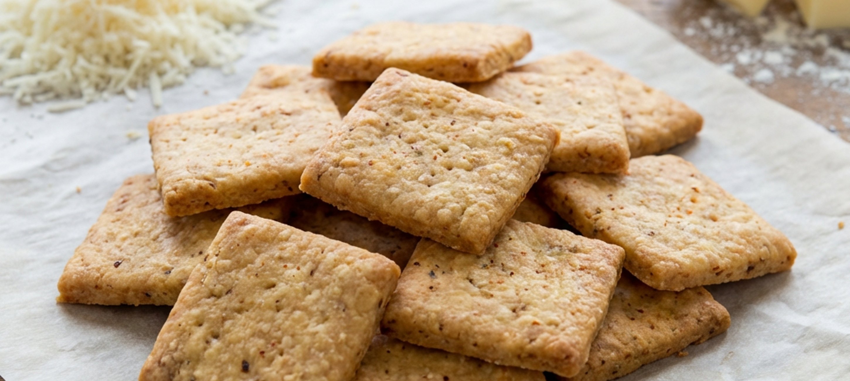 - 4Pečte v předehřáté troubě 10-12 minut, dokud krekry nejsou zlatavé na okrajích. Po upečení je nechte zcela vychladnout na plechu.