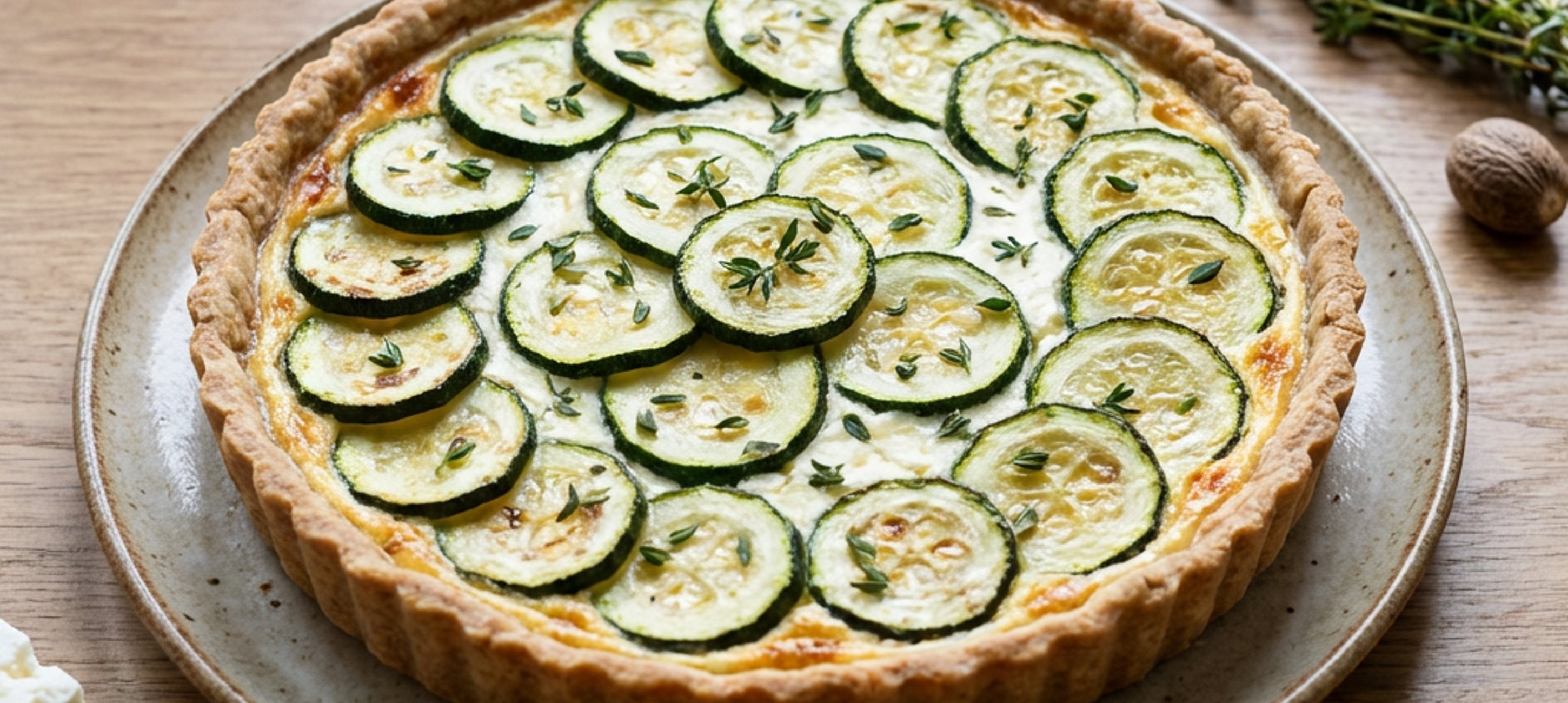- 5Formu o průměru 24 cm vymažeme olejem. Těsto rozválíme na průměr cca 26 cm a pomocí válečku jej přendáme do formy. Těsto na několika místech propícháme vidličkou, položíme na něj pečící papír, nasypeme fazole, tím těsto zatížíme a pečeme na 180°C po dobu 20 minut. Poté koláč vytáhneme z trouby, nalijeme náplň, poklademe plátky cukety a pečeme dalších 30 minut.