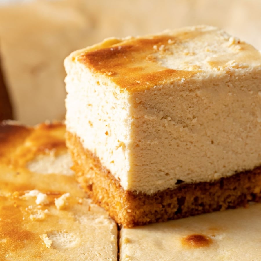 - 6Upečený cheesecake vyndejte z trouby a nechte 1–2 hodiny chladnout ve formě při pokojové teplotě. Jakmile cheesecake zcela vychladne, nakrájejte ho na 12 porcí a podávejte.