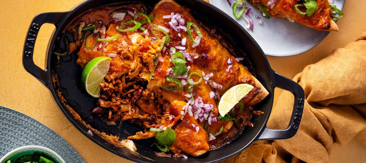 - 4Hotové enchiladas rozdělte na 8 porcí a ihned podávejte.