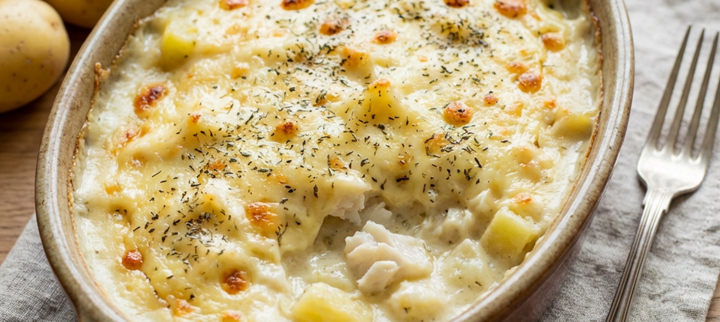 - 3Nyní dejte předehřívat troubu na 200 °C a připravte si zapékací nádobu (23 cm × 27 cm). Jakmile se dovaří brambory s treskou, sceďte je, přidejte je do provařené směsi v pánvi a obsah pánve rozmačkejte vidličkou. Vzniklou směs přendejte do připravené zapékací nádoby. Následně si na jemném struhadle nastrouhejte eidam a směs v zapékací nádobě jím posypte. Poté nádobu vložte do předehřáté trouby a pečte 20–25 minut dozlatova při 200–210 °C.