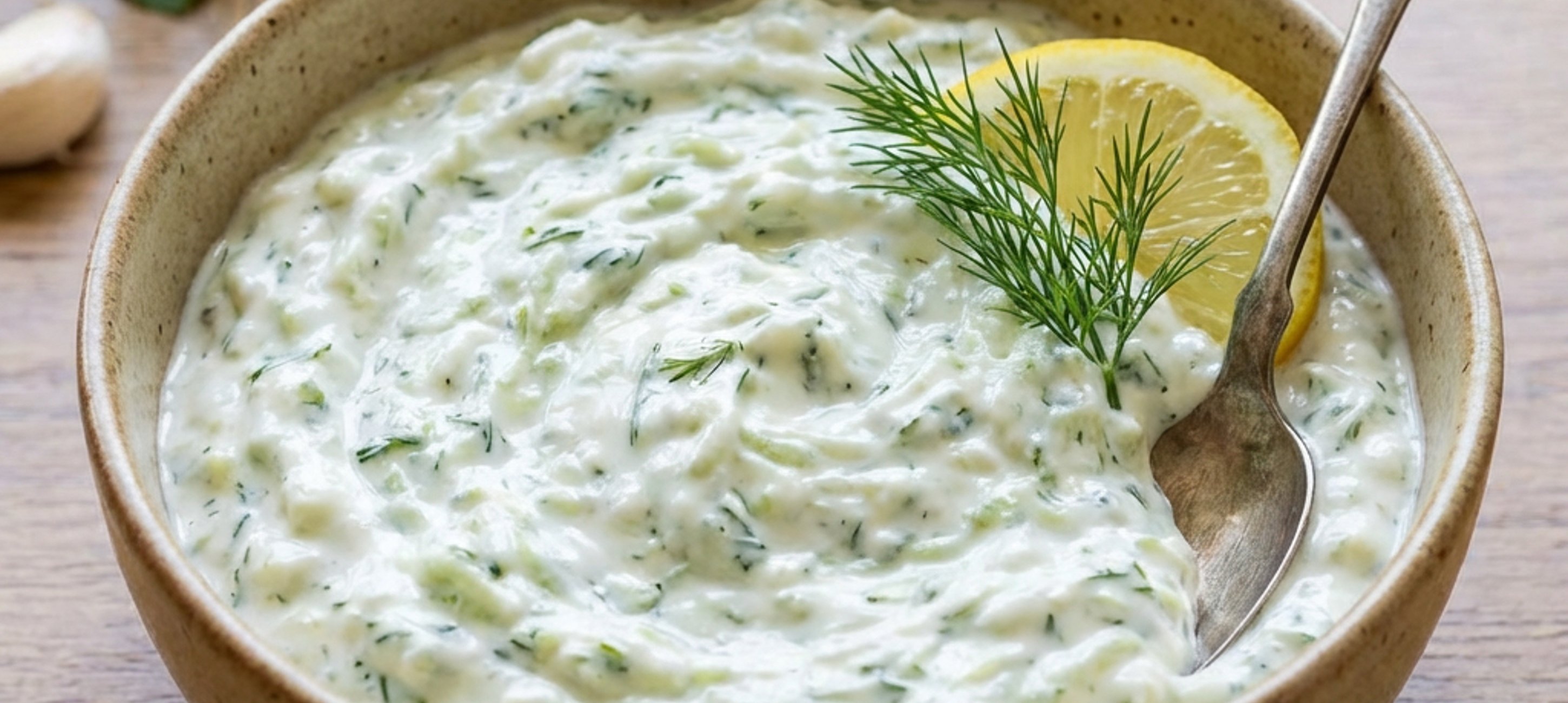 - 3Po uvedené době nastrouhanou okurku vymačkejte a přidejte ji do mísy k mátě, kopru a česneku. Následně do mísy přidejte jogurt a vše promíchejte. Do vzniklé směsi podle chuti přidejte sůl a citronovou šťávu a znovu promíchejte.