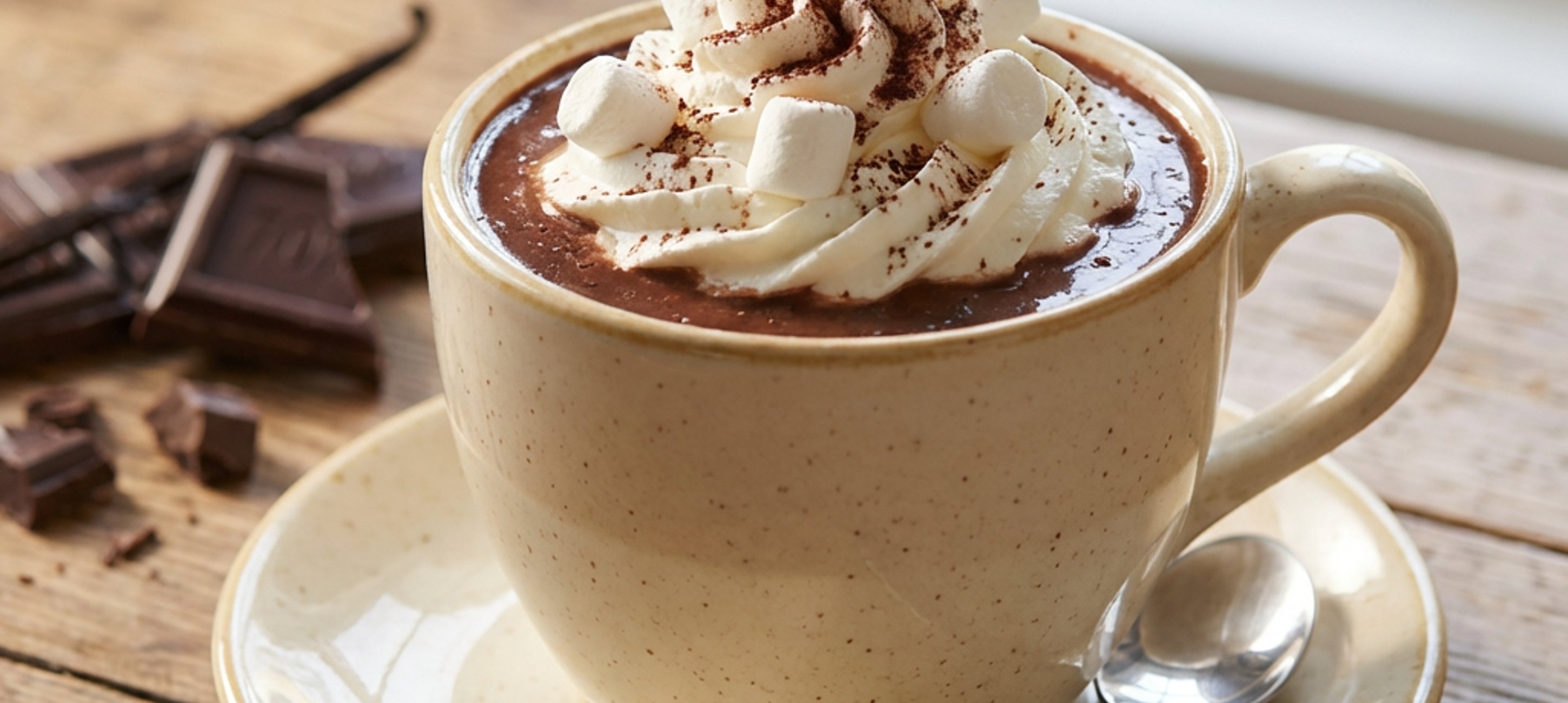 - 4Nalijte horkou čokoládu do hrnku. Pro extra požitek můžete navrch přidat šlehačku a posypat kakaem.