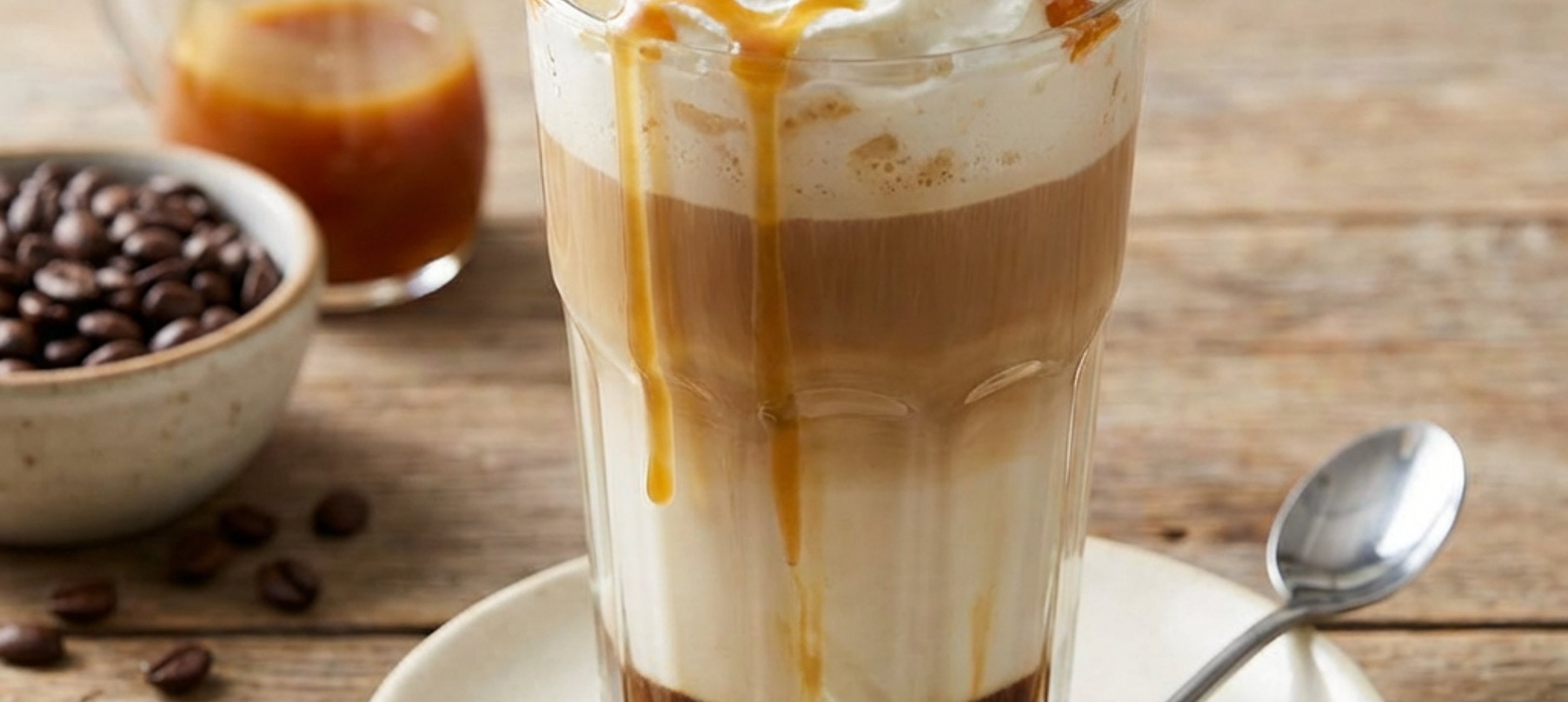 - 1–2 lžíce karamelového sirupu + na ozdobu