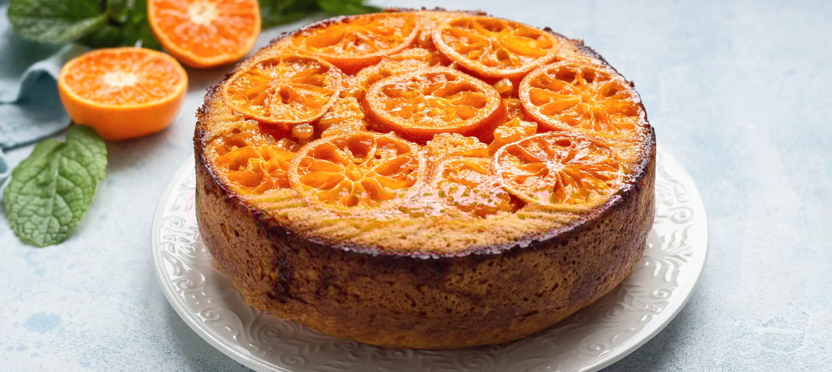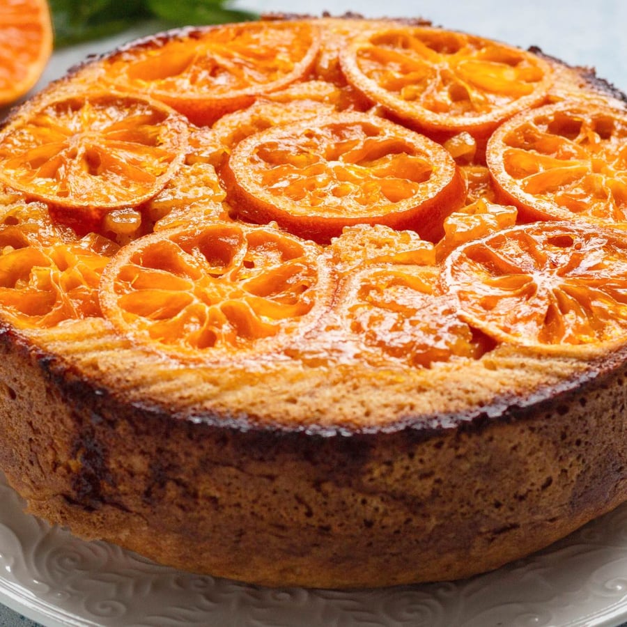 - 6Arrange the mandarin slices over the sugar mixture in the pan, starting from the center and working outward. Slightly overlap the slices to keep them in place. Set the pan aside.