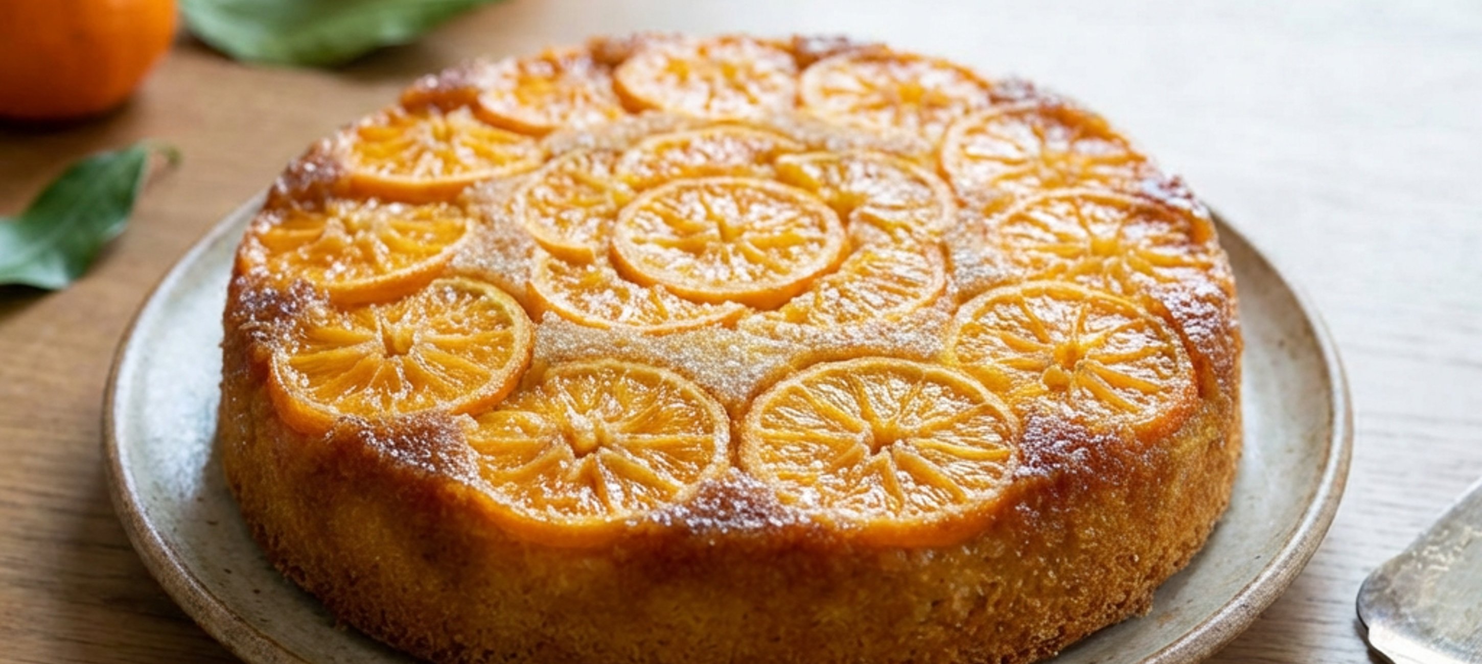 - 6Na směs s cukrem do formy naskládejte plátky mandarinek, začněte uprostřed a postupujte směrem ven. Plátky částečně překrývejte, aby se dobře udržely na místě. Formu dejte stranou.