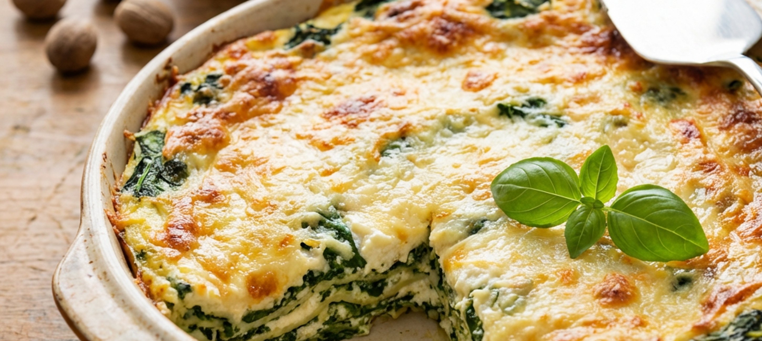 - 10a lasagne naneseme část špenátové směsi, přelijeme bešamelem a pokračujeme další vrstvou lasagní.