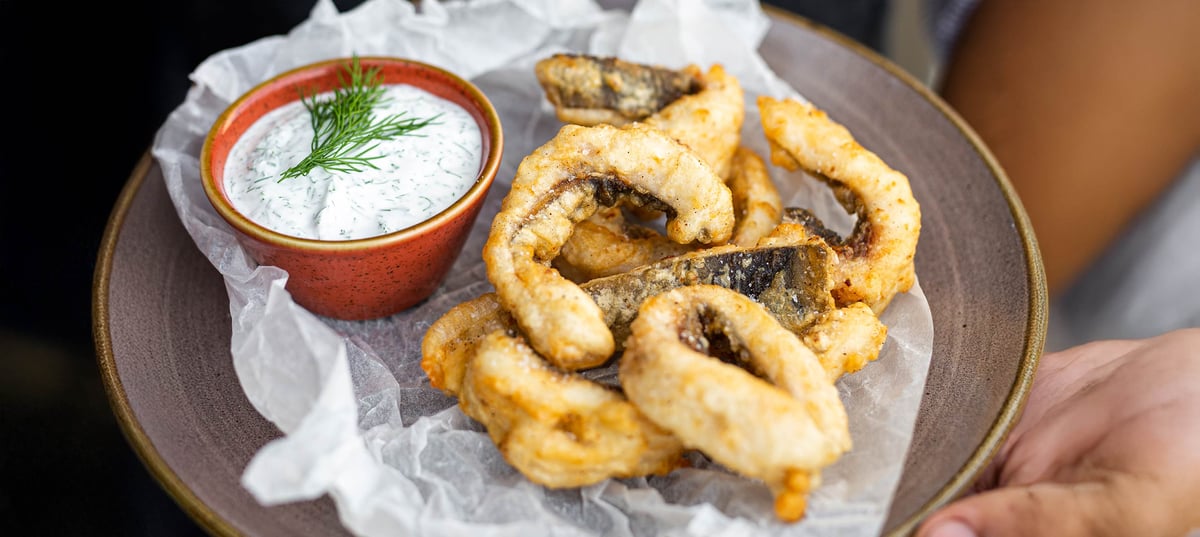- 1Cut the fillets into fries. In a bowl, mix flour with starch. Add sweet paprika and cumin. Season with salt and pepper. Add the cut fries to the bowl and mix everything thoroughly. Be careful not to damage or tear the meat too much. Gradually add sparkling water until a thicker batter similar to pancake batter forms.
