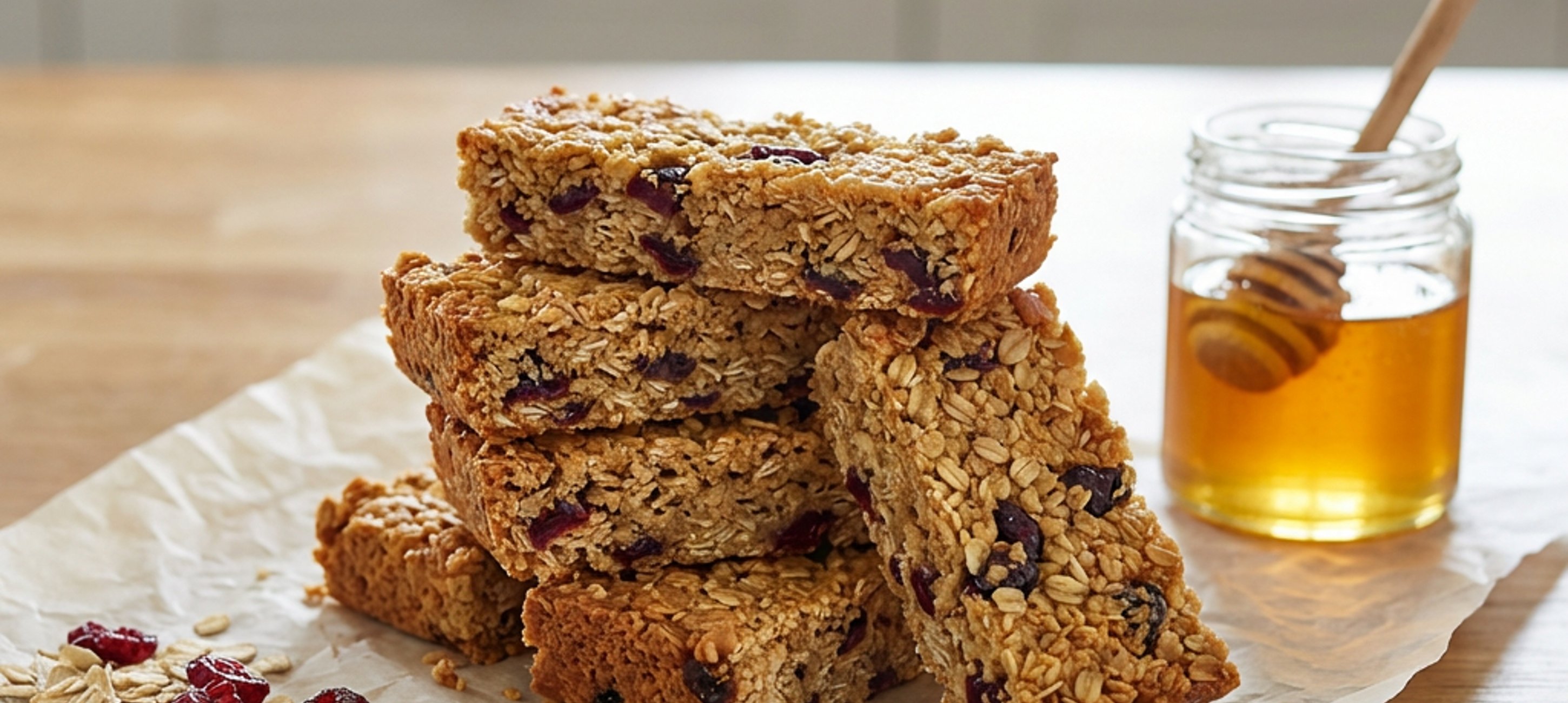 - 2Ve větší míse smíchejte vločky, med, máslo, vanilkový extrakt, arašídové máslo, brusinky a špetku soli. Vzniklou směs pečlivě napěchujte do pekáče nejprve dlaní a poté skleničkou, aby tam nebyly vzduchové bubliny a tyčinky se při krájení nelámaly. Pečte 20–25 minut na 170–180 °C.