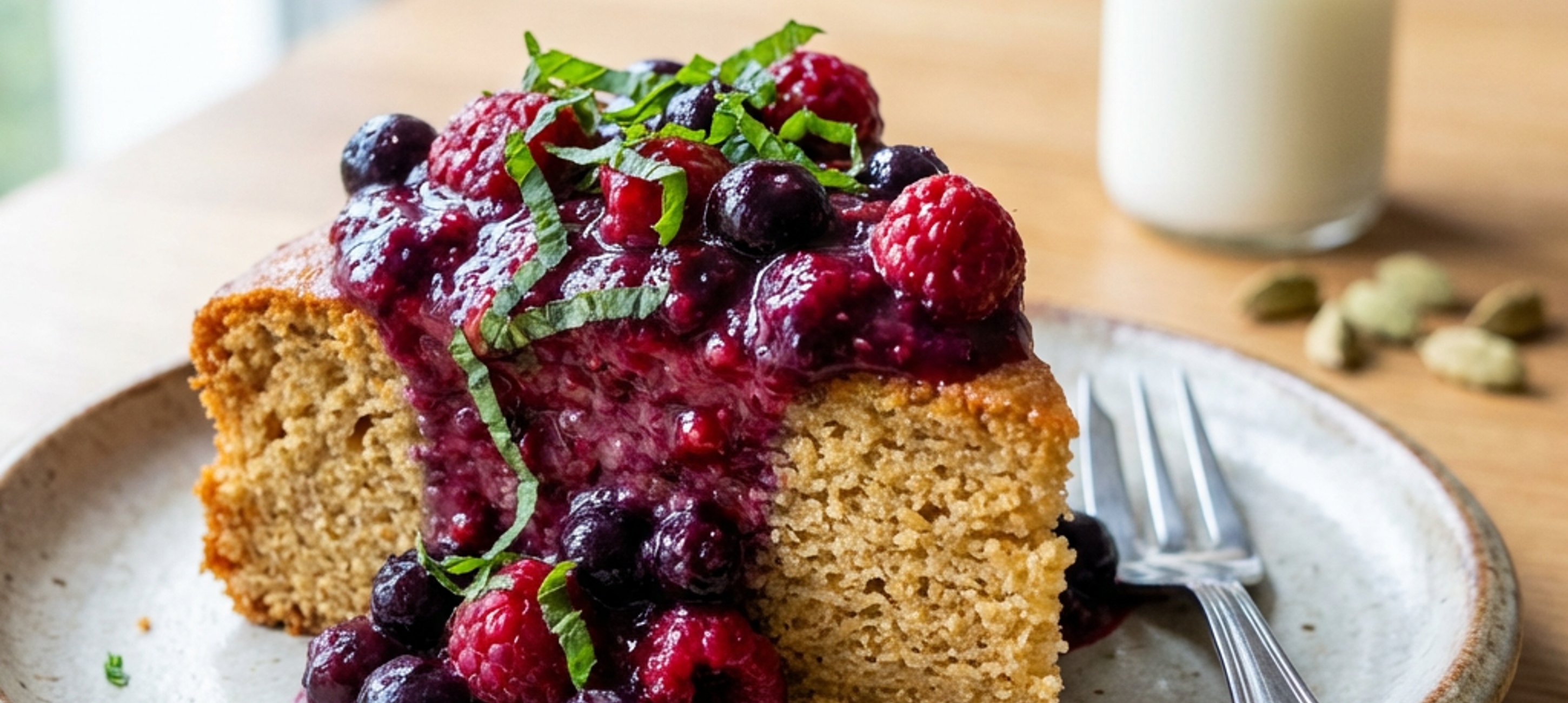 - 4Mezitím si připravte svařené ovoce. V menším hrnci přiveďte k varu lesní ovoce, 2 lžíce vody a med a na mírném až středním plameni vařte do zhoustnutí (cca 5 minut).
