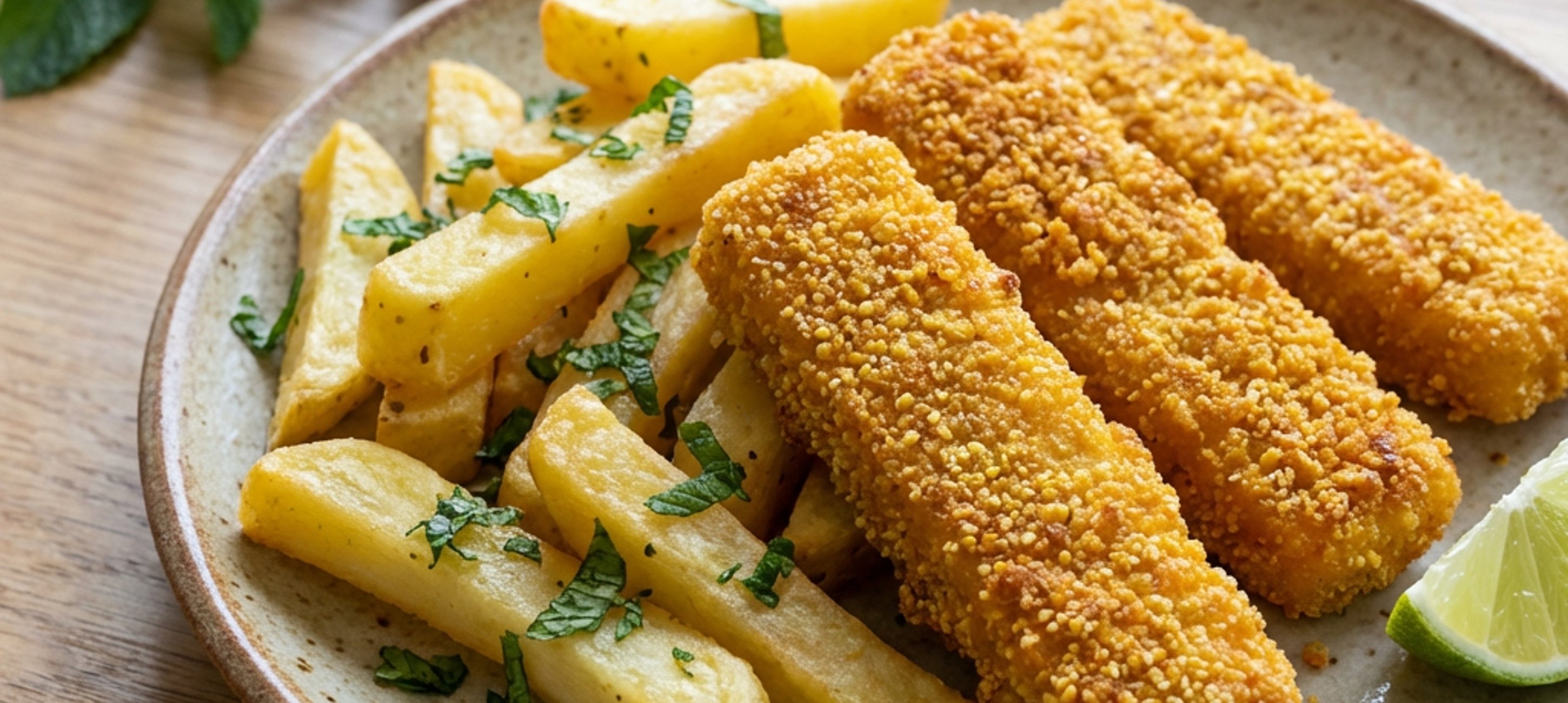- 6Nakonec hotové hranolky posypte najemno nasekanou mátou a podávejte spolu s rybími prsty.