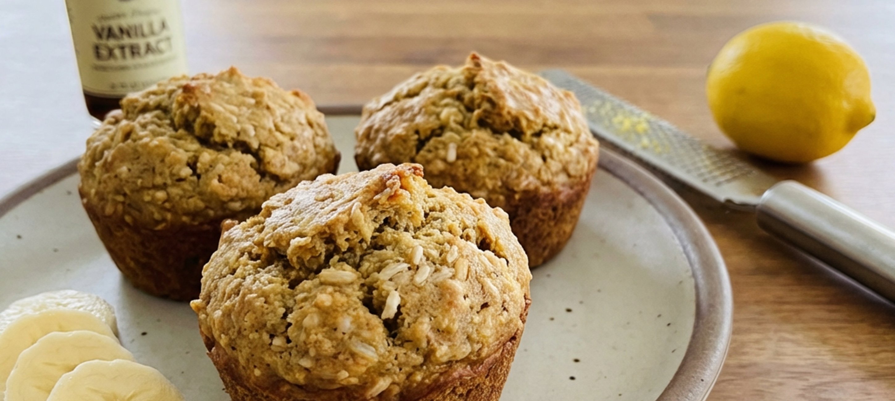- 2Do větší mísy vložte banán a rozmačkejte jej vidličkou. Poté přidejte rýži, vejce, škrob, mléko, kypřicí prášek, vanilkový extrakt a kůru z citronu a promíchejte. Těsto pomocí lžíce plňte do ½ až ⅔ objemu papírových košíčků. Muffiny pečte 20–25 minut na 180–190 °C.