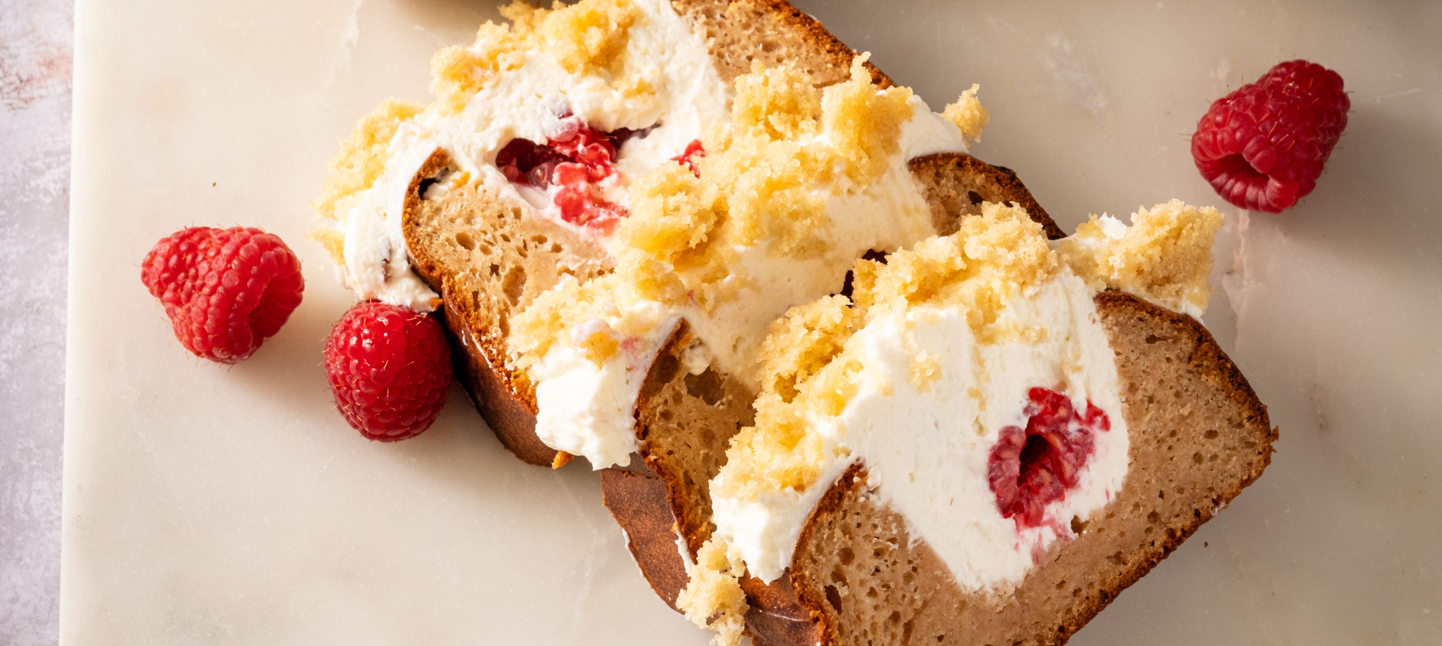 - 4Meanwhile, prepare the filling: In a medium-sized bowl, mix cream cheese with the remaining sour cream and honey, and finally gently fold in the raspberries.