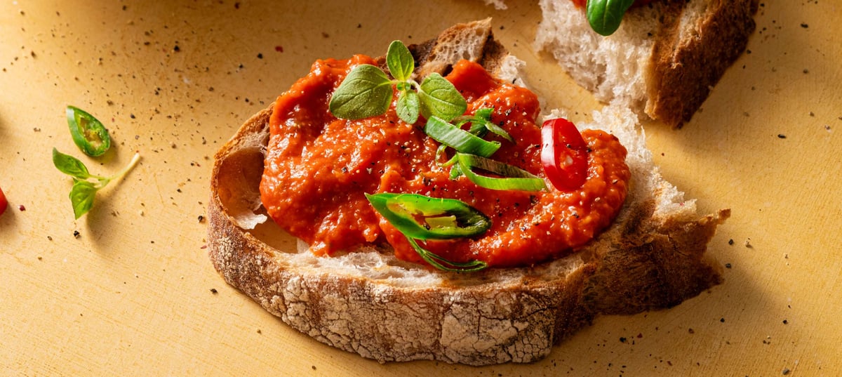 - 4Remove the skin from the cooled peppers and place them in a blender. Add the drained white beans, basil, peeled garlic, vinegar, and lemon juice to the blender and blend everything until smooth. Season the resulting spread with salt and pepper and serve.