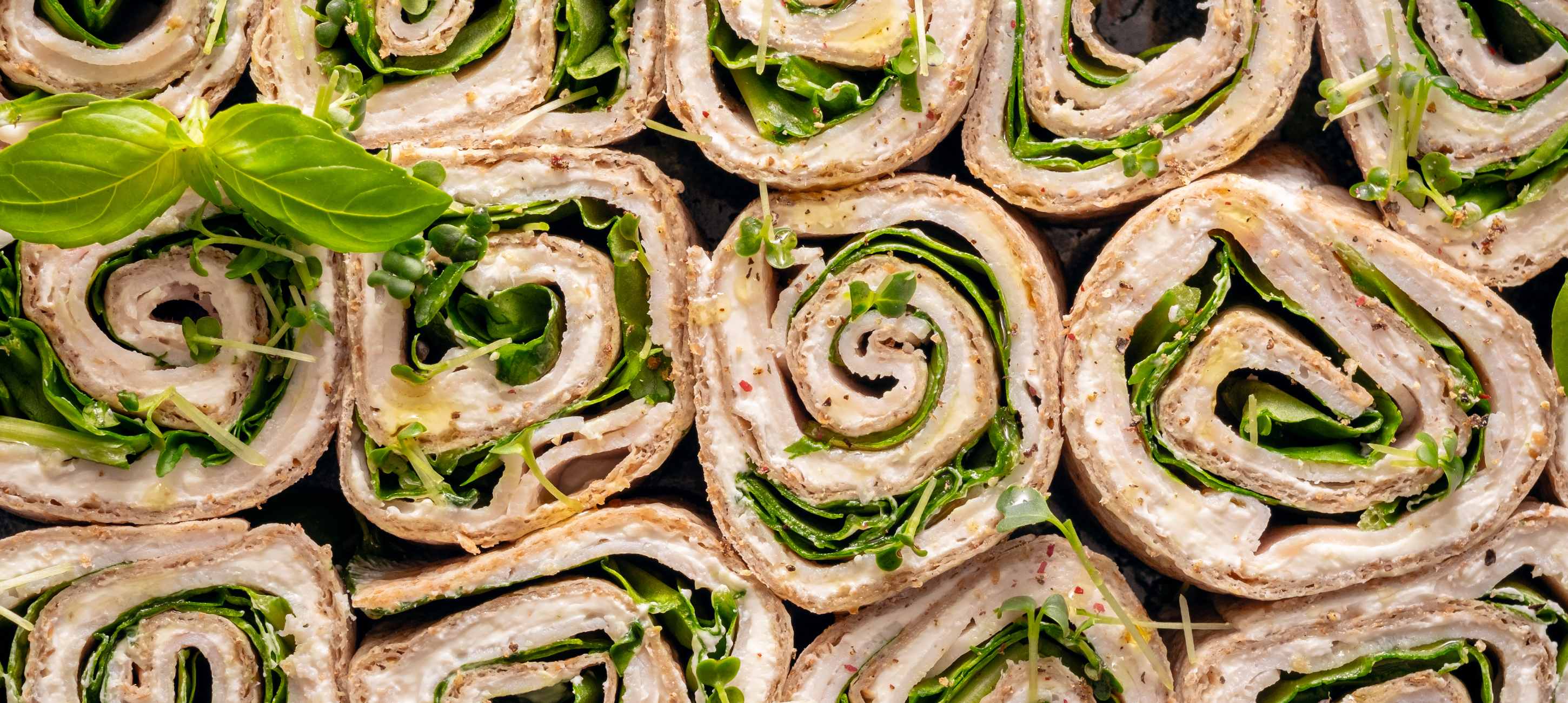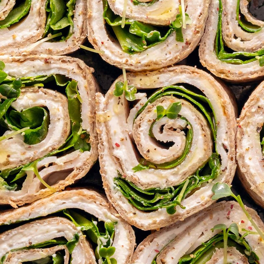 - 4Jednotlivé zarolované tortilly nakrájejte na 6 stejně velkých kousků – vznikne celkem 18 kusů – a poté ihned podávejte.