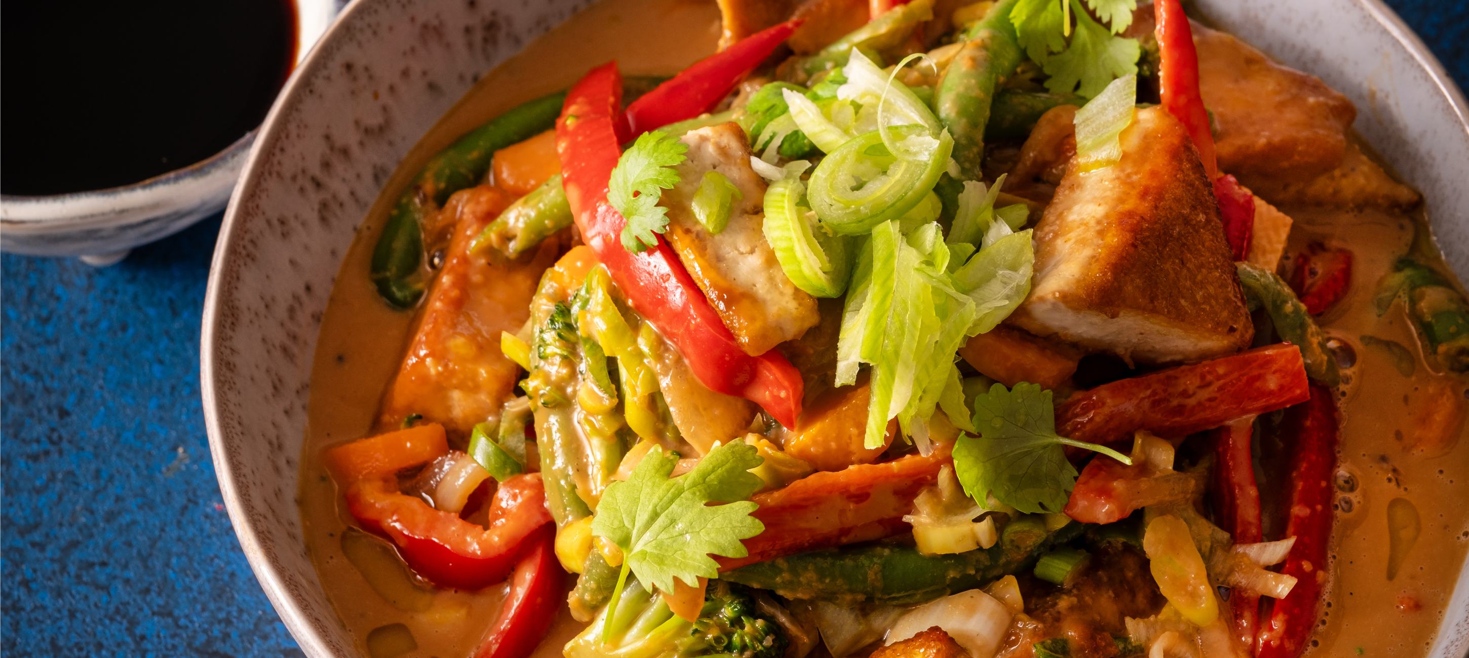- 2Meanwhile, prepare the vegetables: Peel the carrot and cut it into thin slices. Clean the green beans and remove the ends. Peel the onion and cut it into thin slices. Remove the seeds from the bell pepper and also cut it into thin slices. Cut the broccoli florets into smaller pieces. Finely chop the coriander and spring onion.