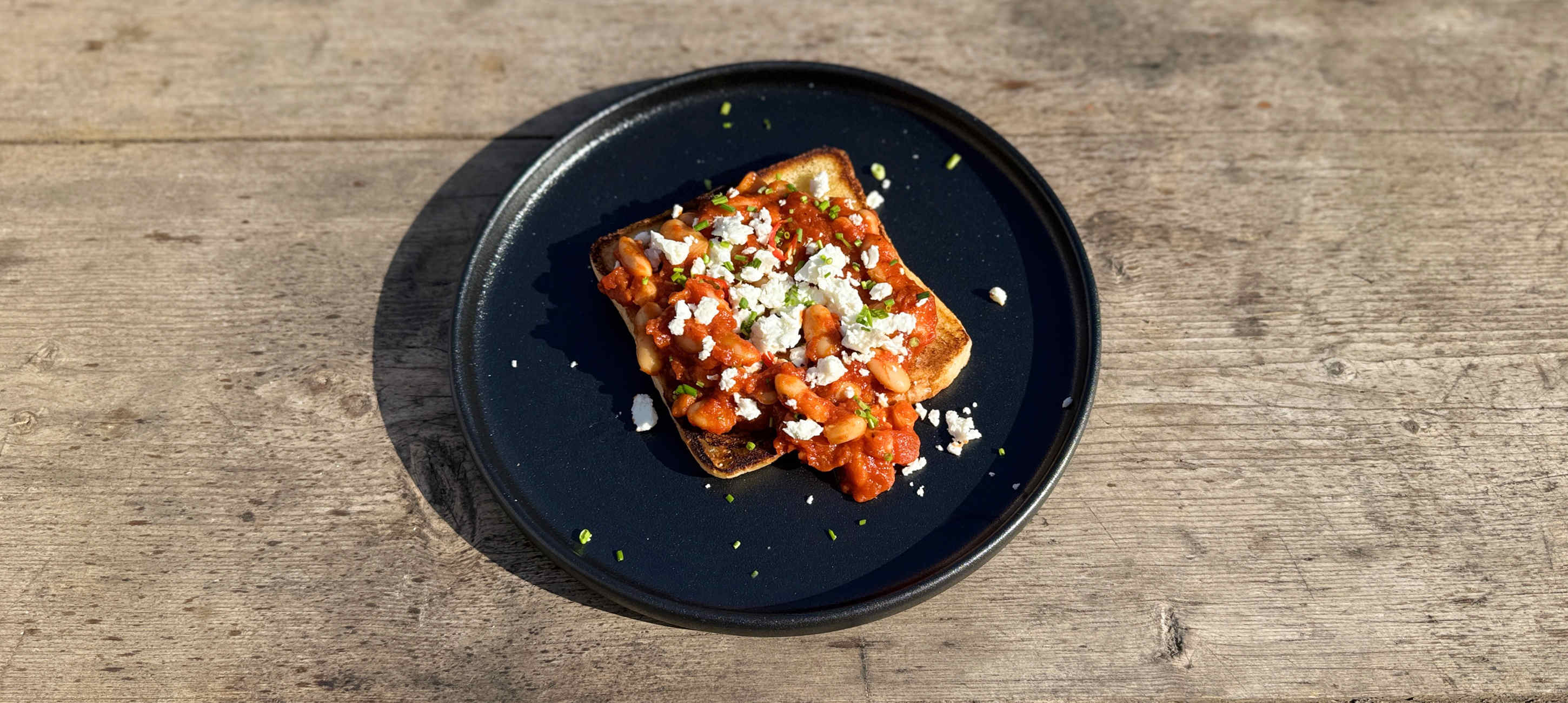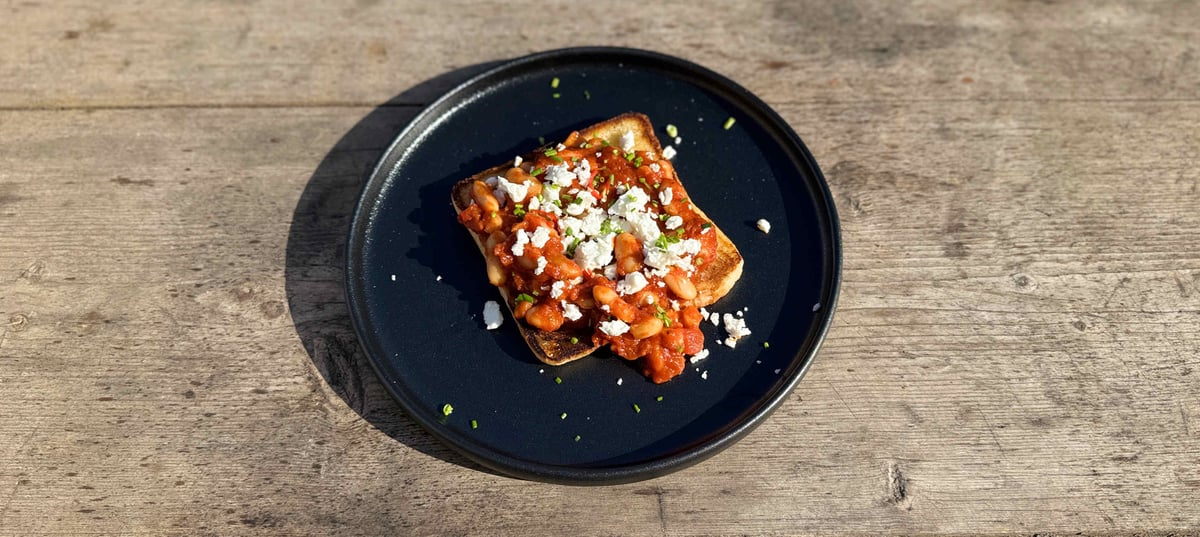 - 5Serve the beans on crispy toasted bread. Crumble feta cheese on top and sprinkle with freshly chopped chives.