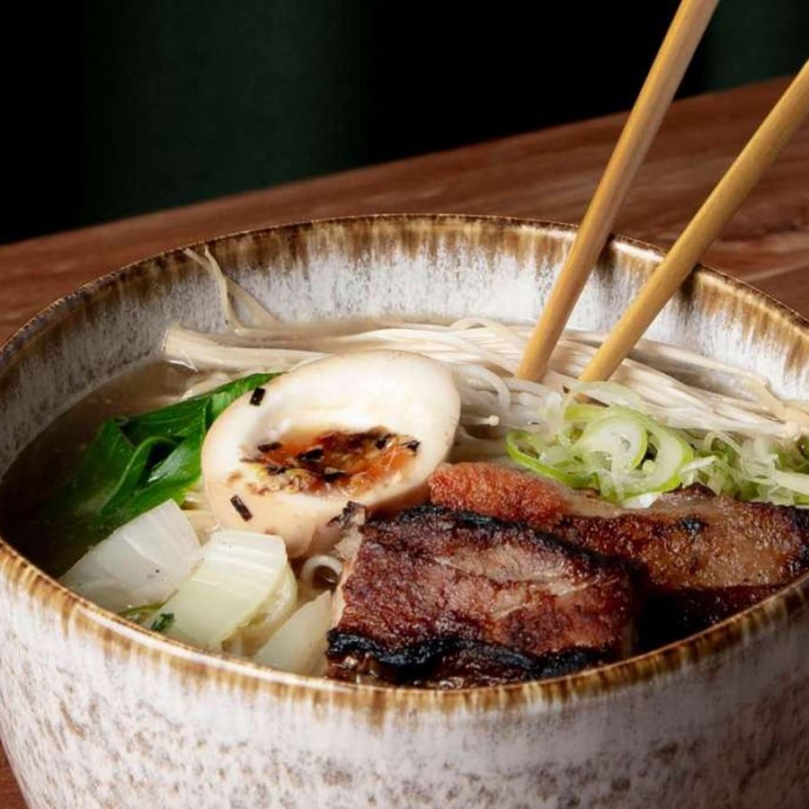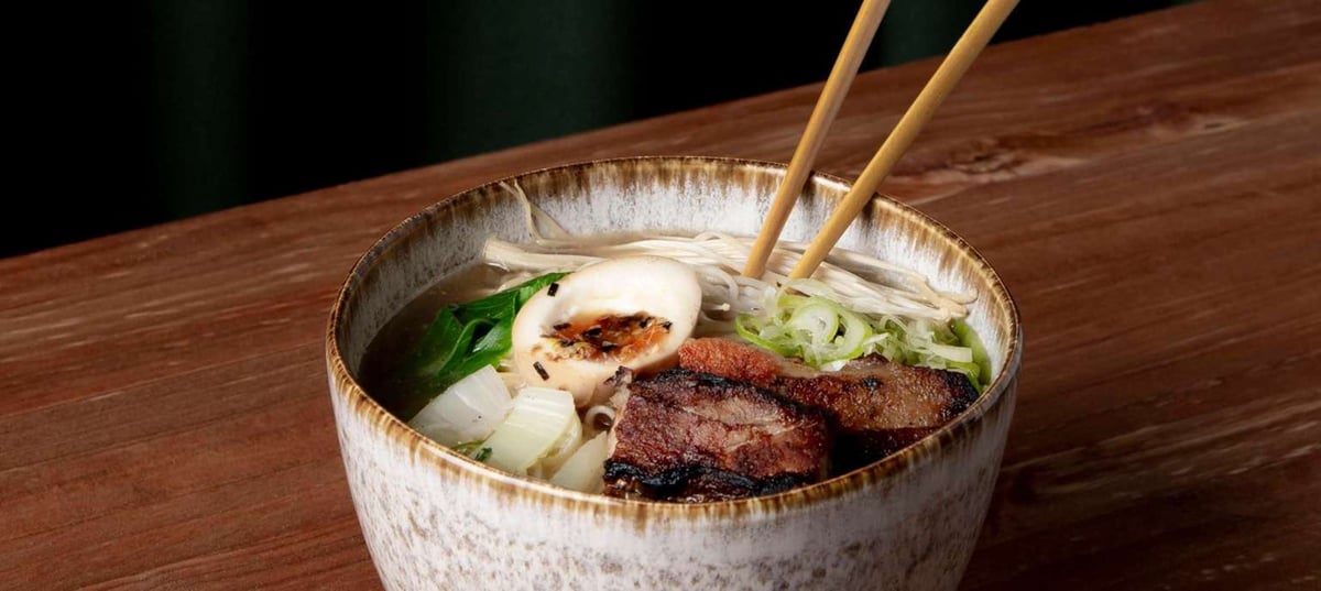 - 7Do každé misky dejte: nudle → vývar → plátky masa → vejce → jarní cibulku → nori. Podávejte horké.