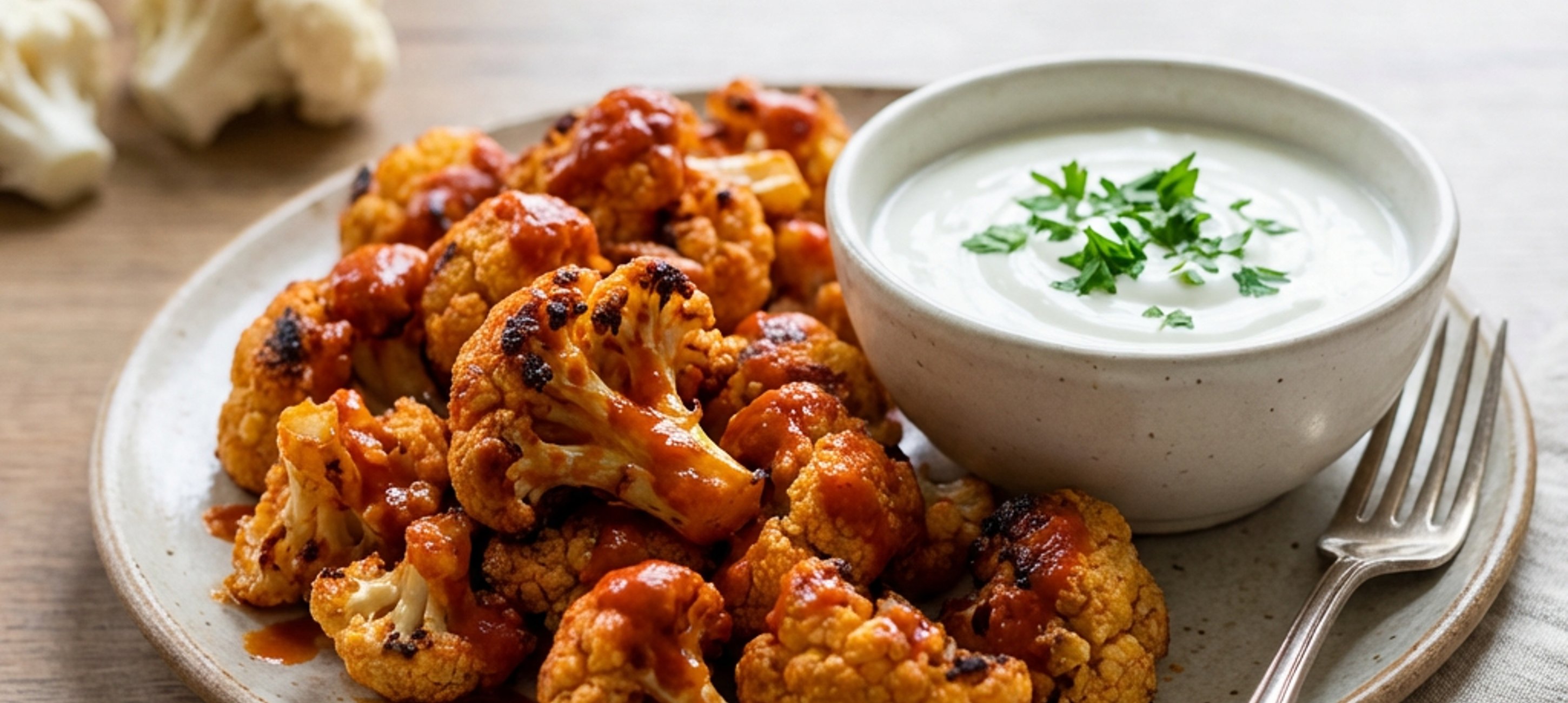 - 2Rozprostřete s dodatečnými rozestupy na plech a dejte péct do předehřáté trouby na 25 minut, v polovině růžičky obraťte, aby byl květák opečený do křupava z obou stran. Mezitím připravte buffalo omáčku. Máslo rozpusťte společně s cukrem, následně přidejte sriracha omáčku a rozmíchejte.