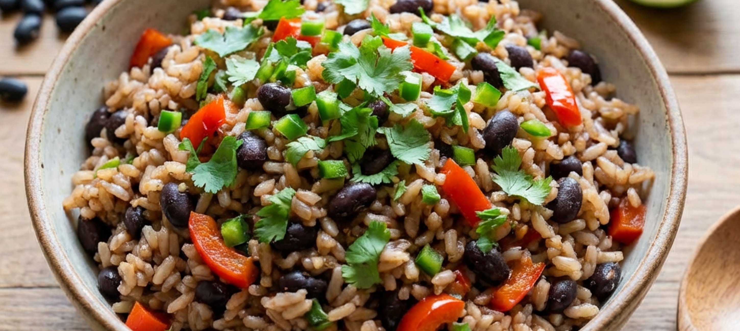 - 2Jemně vmíchejte vařenou rýži a vařte zhruba další 2 minuty, dokud se vše dobře nespojí. Těsně před podáváním přidejte koriandr, nasekanou papriku a jalapeño. Dochuťte solí a pepřem podle chuti.