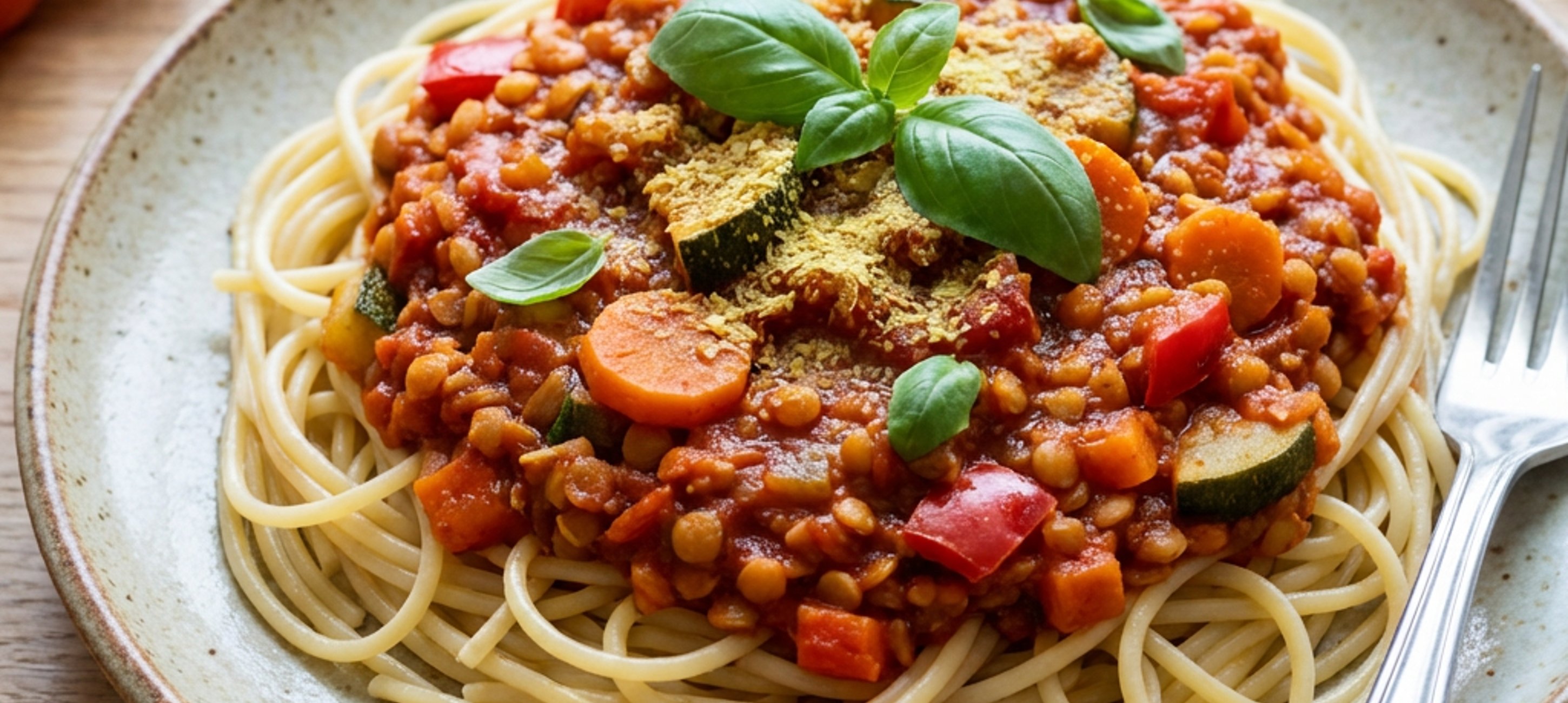- 1V hlubší pánvi rozpalte olivový olej a orestujte nasekanou cibuli, dokud nezesklovatí. Přidejte mrkev, cuketu a červenou papriku a krátce orestujte, dokud zelenina nepovolí. Poté přidejte česnek a ještě minutu restujte. Přidejte nakrájená rajčata, propláchnutou čočku a rajčatový protlak. V případě potřeby přilejte trochu vody. Přiklopte a vařte na mírném ohni zhruba hodinu (podle potřeby přilévejte vodu), dokud čočka a zelenina nezměknou.