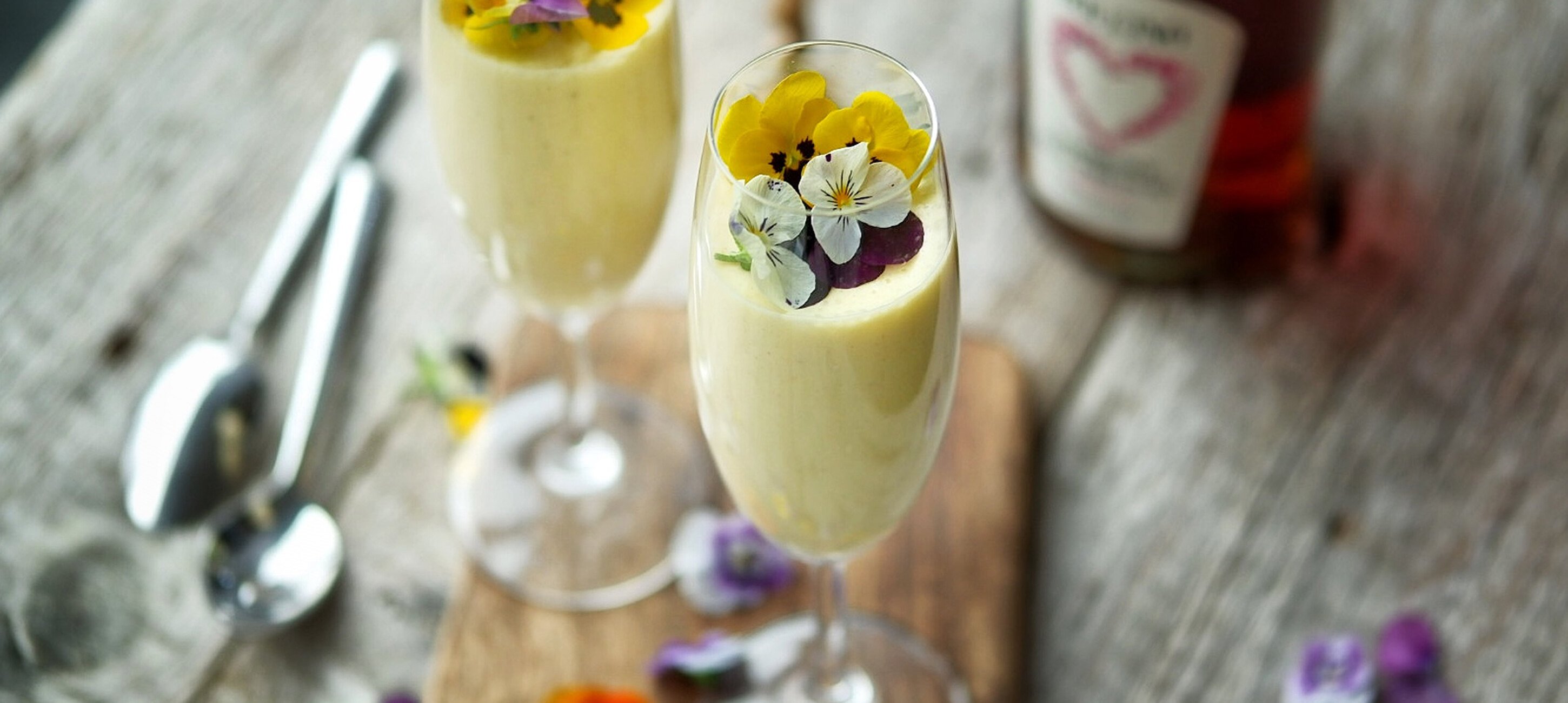- 3Smetanu vyšleháme do tuha a jemně ji vmícháme do žloutkové směsi, nejlépe stěrkou, lehkými pohyby. Hotovou pěnu rozdělíme do skleniček, zakryjeme a dáme do lednice minimálně na 4 hodiny, ideálně přes noc. Ozdobíme jedlými květy. Pěna se jí lžičkou.