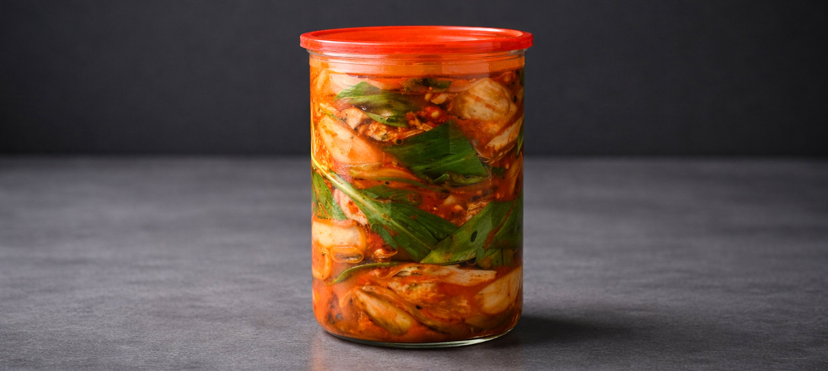 - 8Nádobu uzavřete (ne úplně natěsno) a nechte 1–2 dny fermentovat při pokojové teplotě. Poté přesuňte do lednice a nechte zrát minimálně 4 dny, ideálně 7 a více.