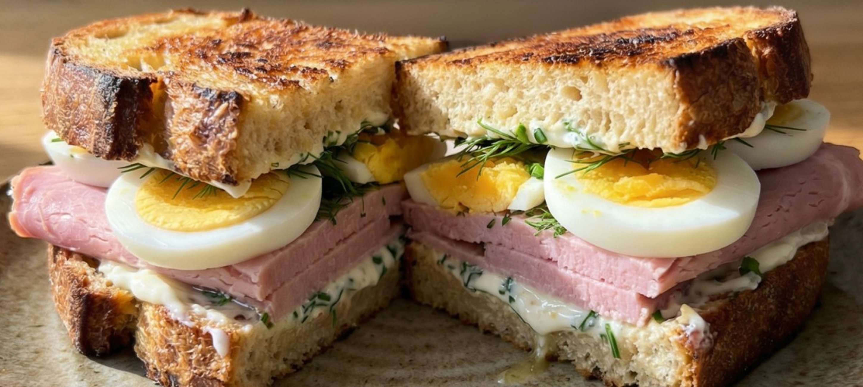 - 4Posypejte čerstvými bylinkami a přiklopte horním plátkem s hořčicí.