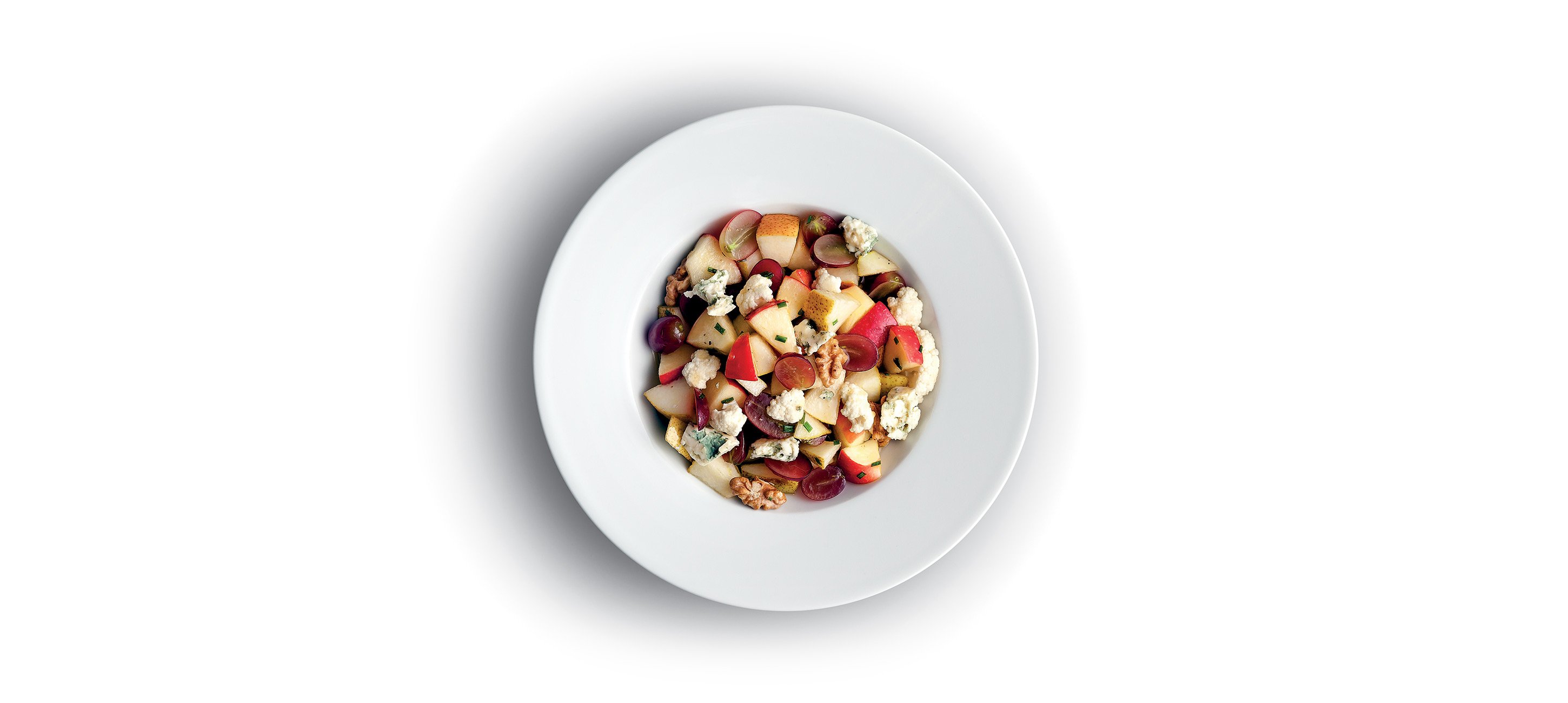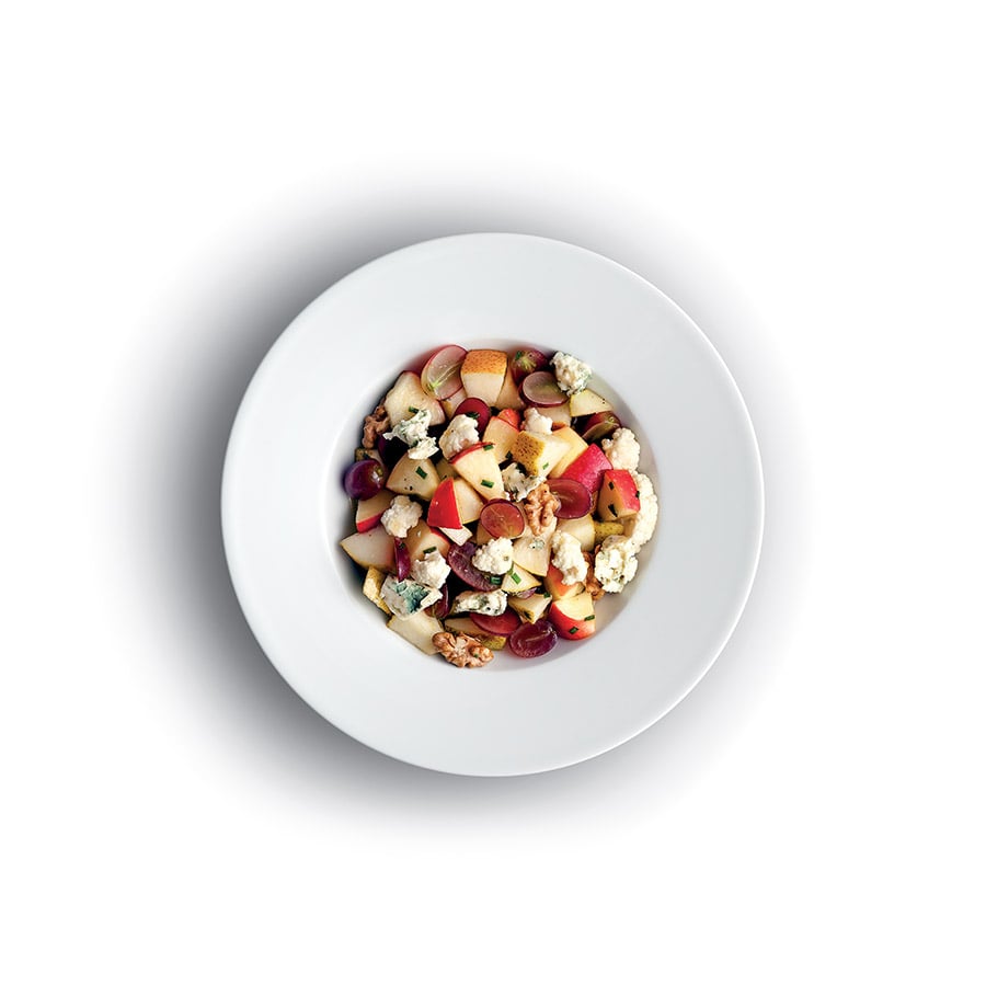 - 4Do misky k jablkům a hruškám přidáme nivu, orestované ořechy, růžičky květáku, hroznové víno a pažitku a promícháme.