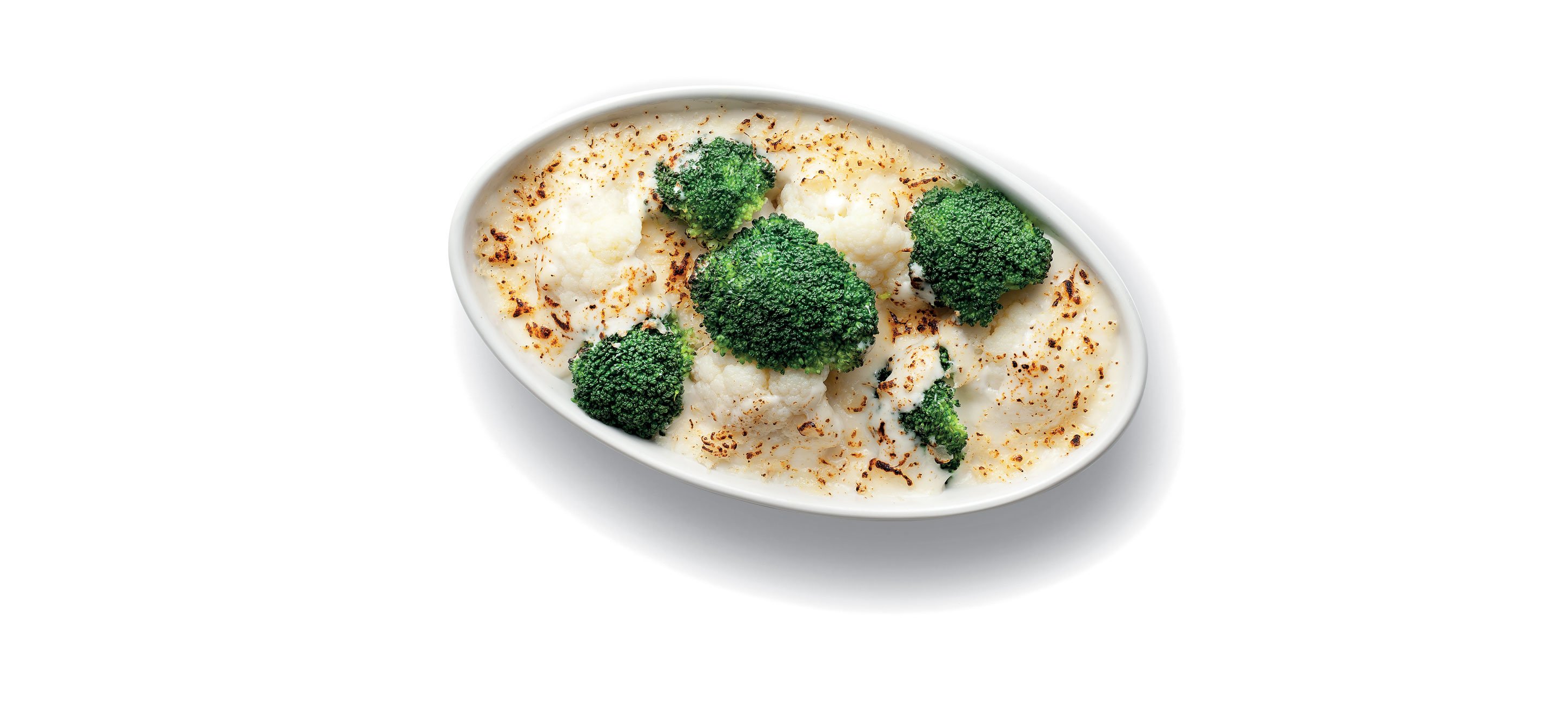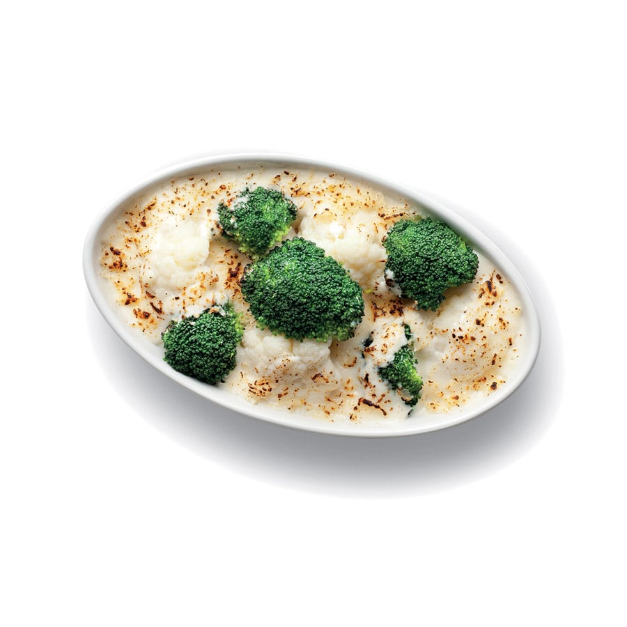 - 8Do zapékací misky rozložíme uvařený květák a brokolici, zalijeme bešamelem a posypeme nastrouhaným parmezánem. Dáme zapéct do rozehřáté trouby na 5 minut.