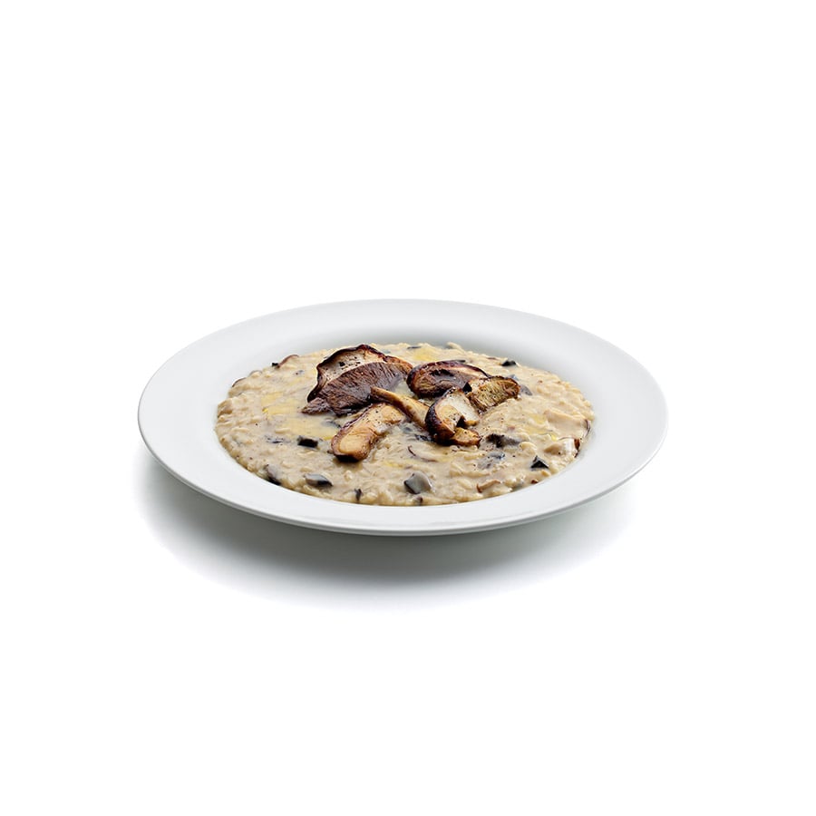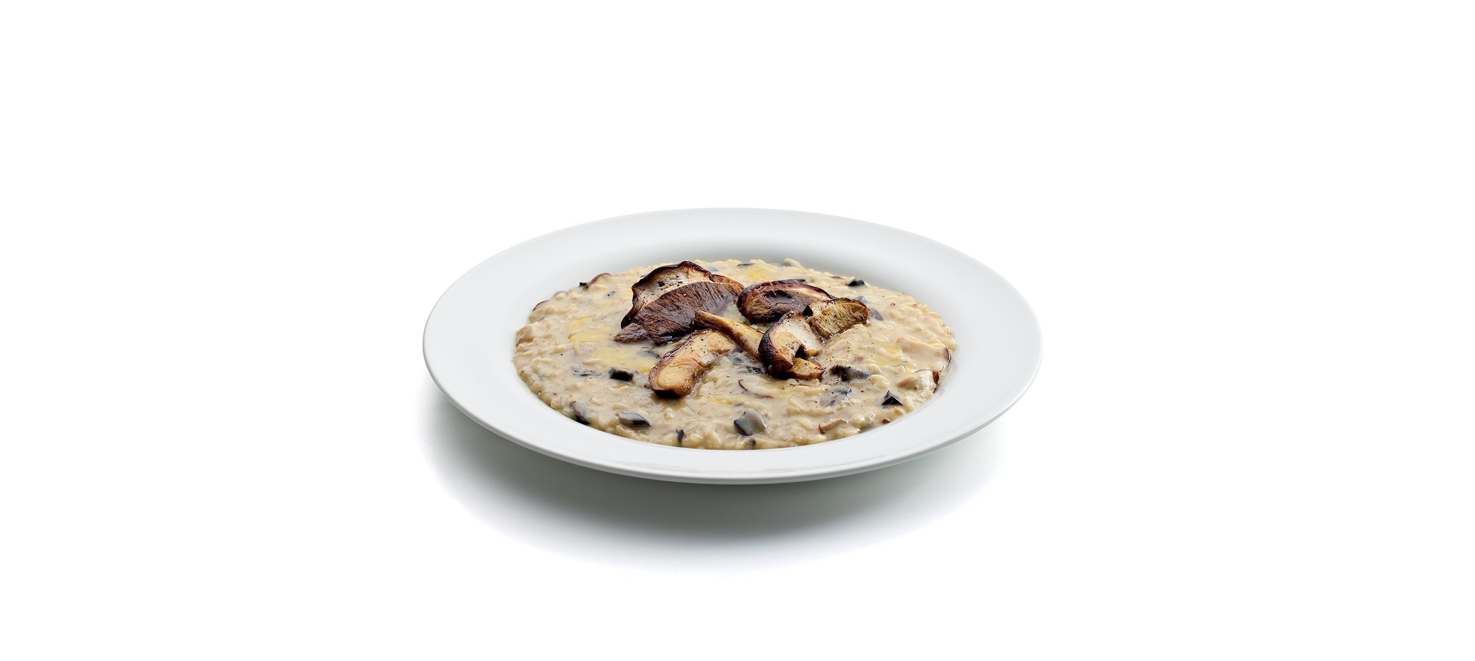 - 2V pánvi na vyšším ohni rozpálíme olivový olej a houby na něm za stálého míchání 2 minuty orestujeme. Osolíme a opepříme a podáváme s risottem.