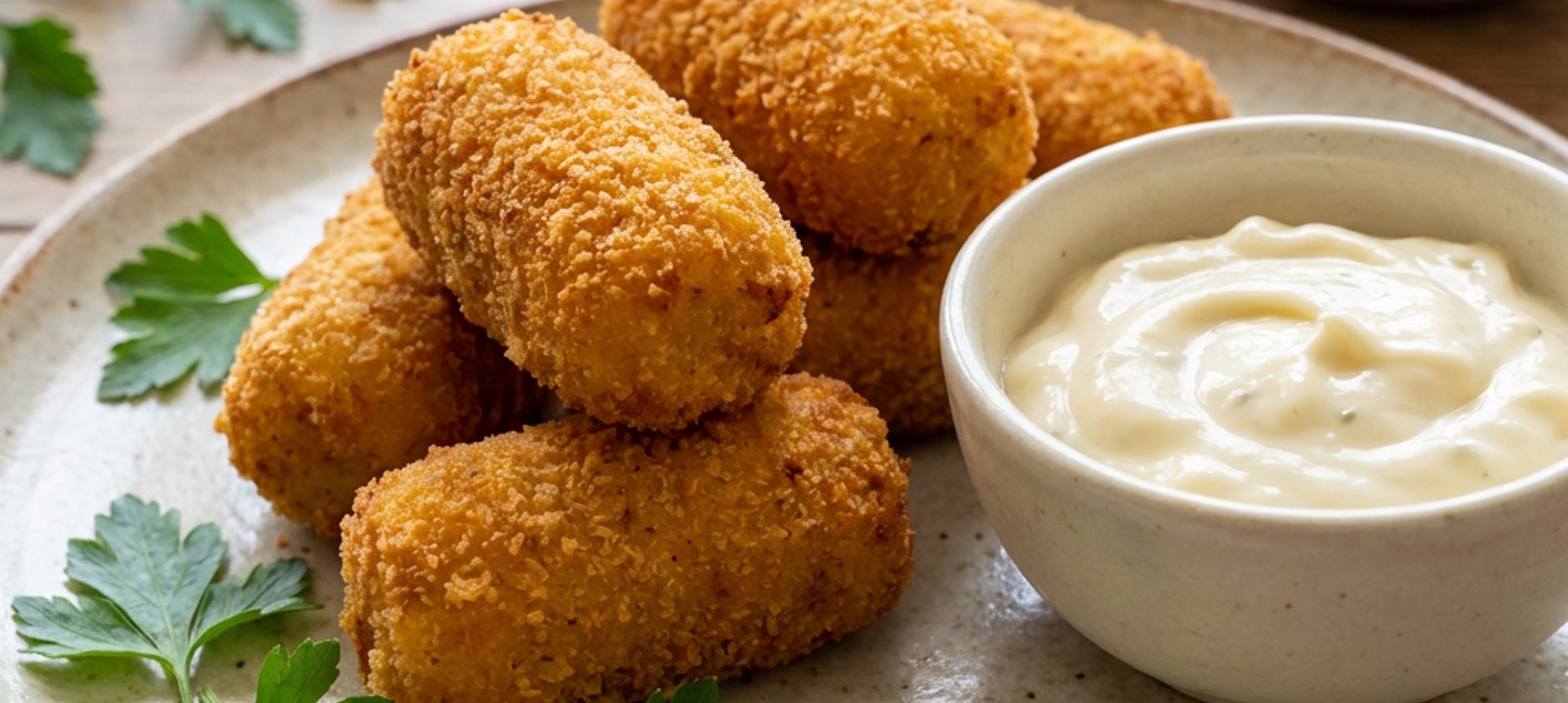- 5Z prochladlé hmoty vytvarujeme krokety o průměru 3 cm a dlouhé 5 cm. Každou obalíme v mouce, v rozšlehaném vejci a ve strouhance. Smažíme je ponořené v rozehřátém oleji dozlatova 1 minutu.