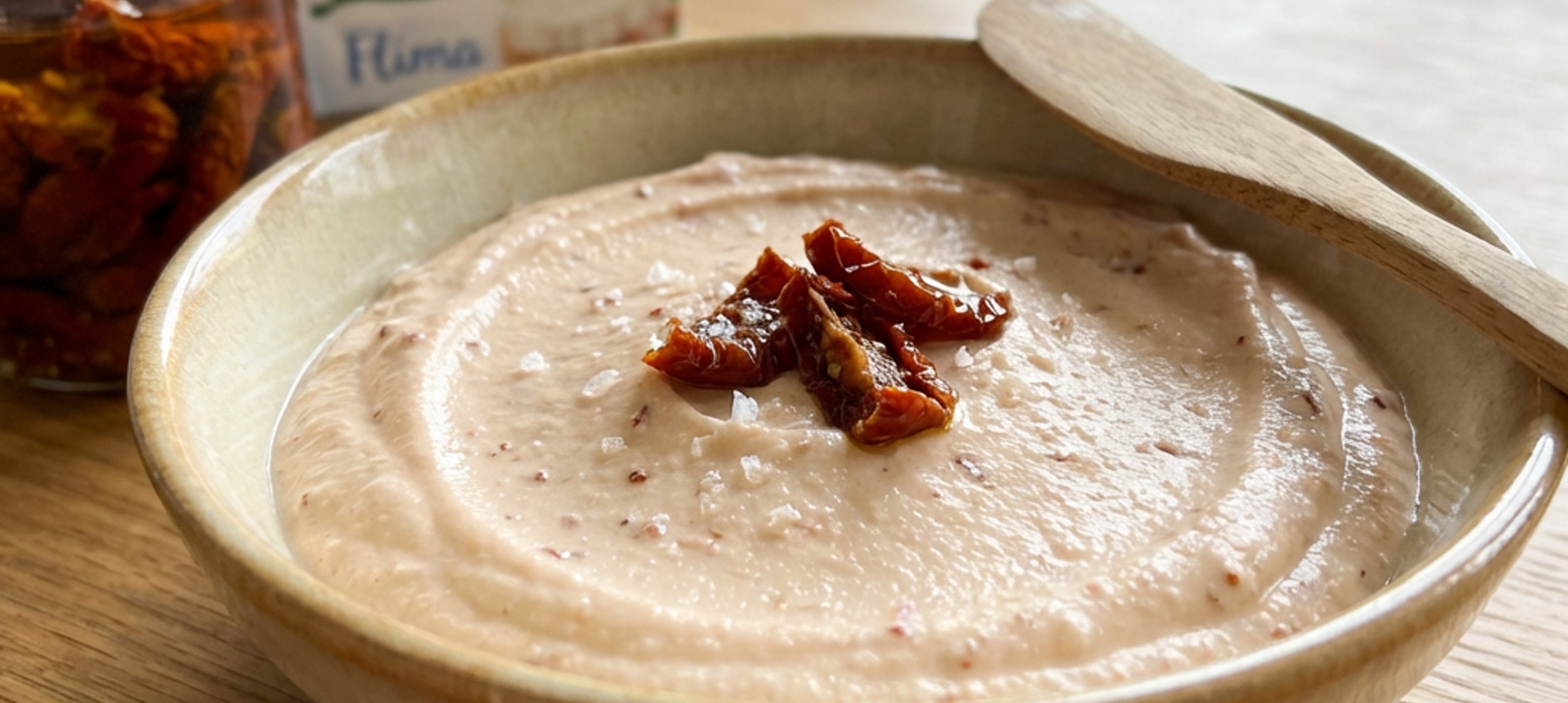 - 1Sušená rajčata nakrájíme nahrubo a smícháme v misce s Lučinou. Směs promixujeme tyčovým mixérem a dle potřeby dochutíme solí.