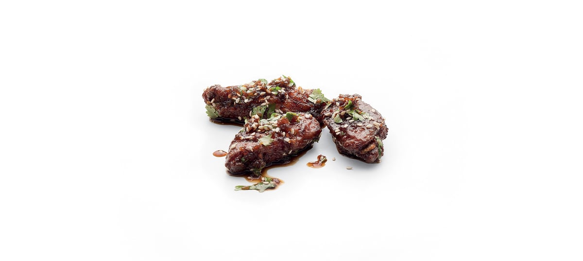 - 2Sezamová semínka zlehka orestujeme na suché pánvi a v misce je smícháme s nakrájeným koriandrem. Osmažená kuřecí křídla obalíme nejprve v omáčce teriyaki a poté v sezamových semínkách s koriandrem.