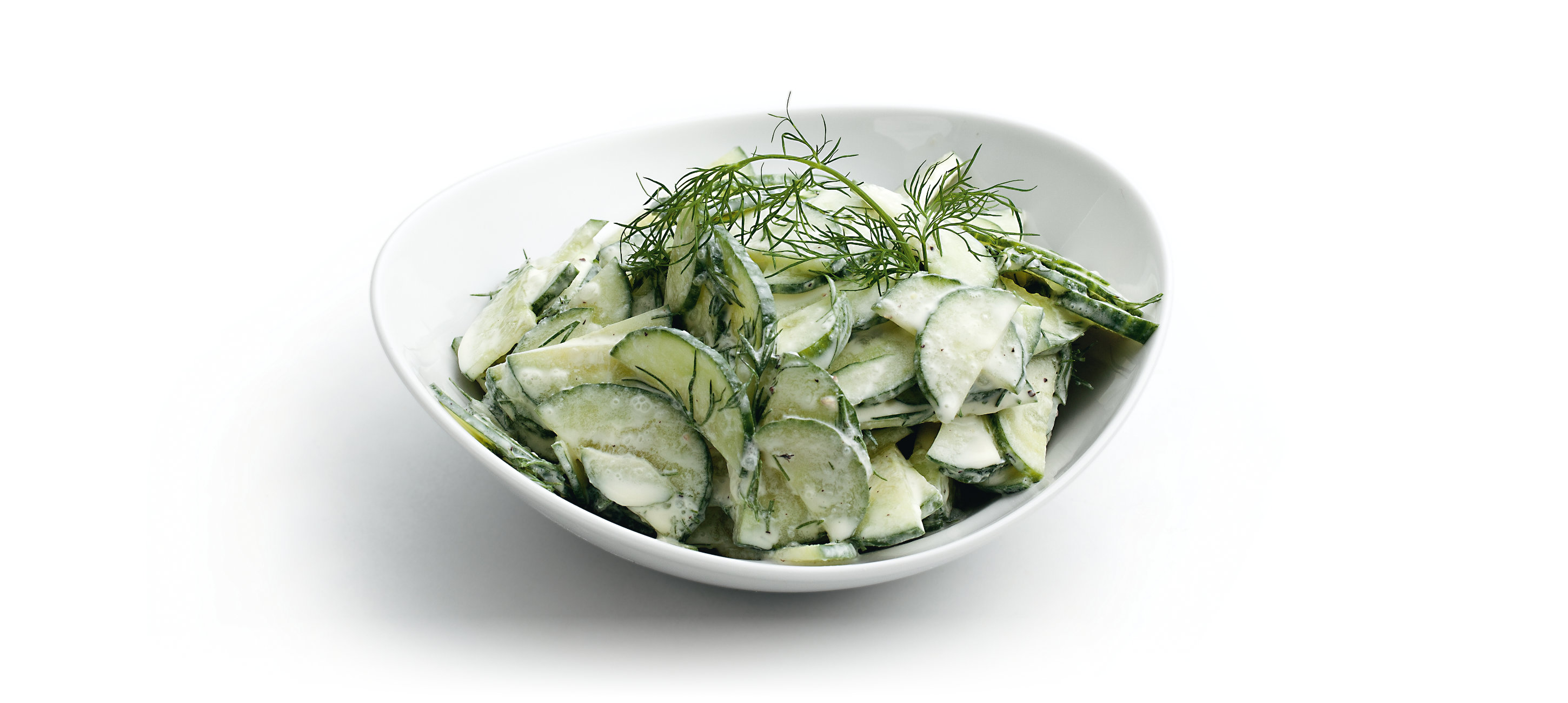 - 2V misce metličkou smícháme smetanu se zakysanou smetanou, přidáme cukr, špetku soli a špetku čerstvě mletého pepře, ocet a citronovou šťávu. Nakonec vmícháme nakrájený kopr. Přidáme okurku a promícháme.