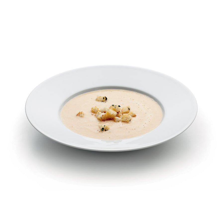 - 5V misce rozšleháme zbytek smetany se žloutky. Polévku stáhneme z ohně a vmícháme do ní rozšlehané žloutky se smetanou. Dle potřeby dochutíme solí. Polévku již déle nevaříme.