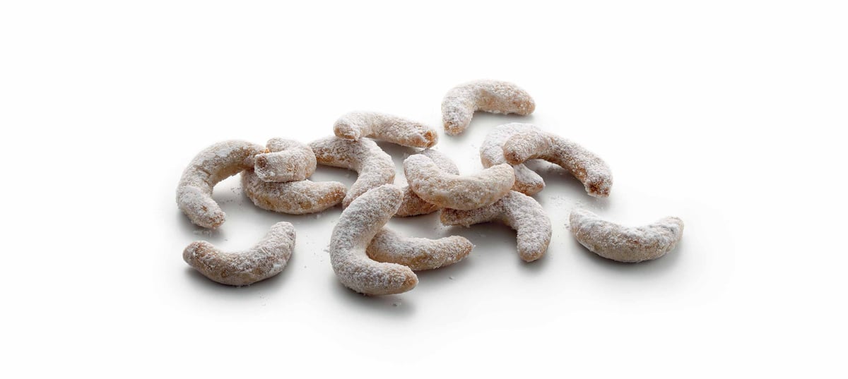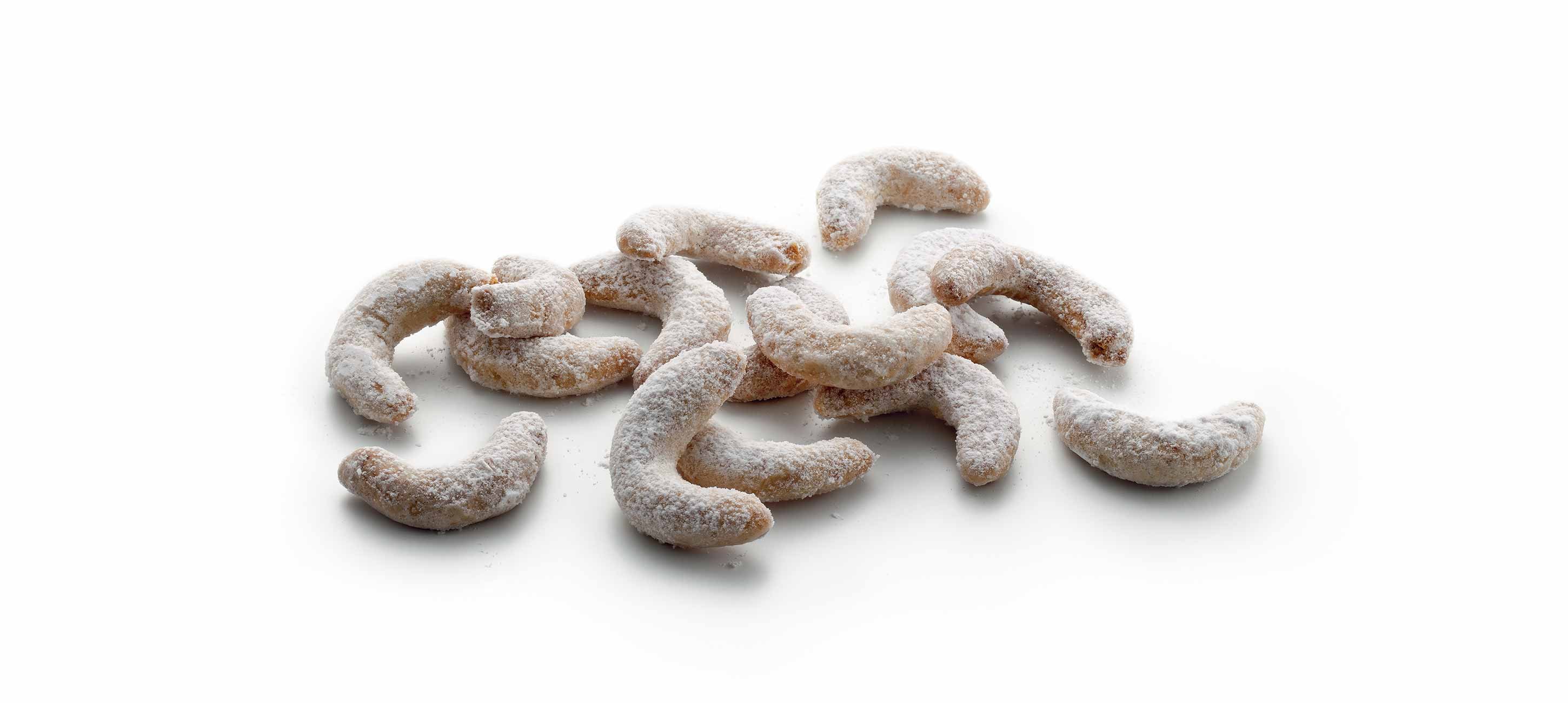 - 3Cut a big piece of the dough and roll it into a rope. Then cut it into little pieces, forming each of them into a crescent shape. Bake in preheated oven until golden brown. Immediately dust the crescents with the sugar mix.
