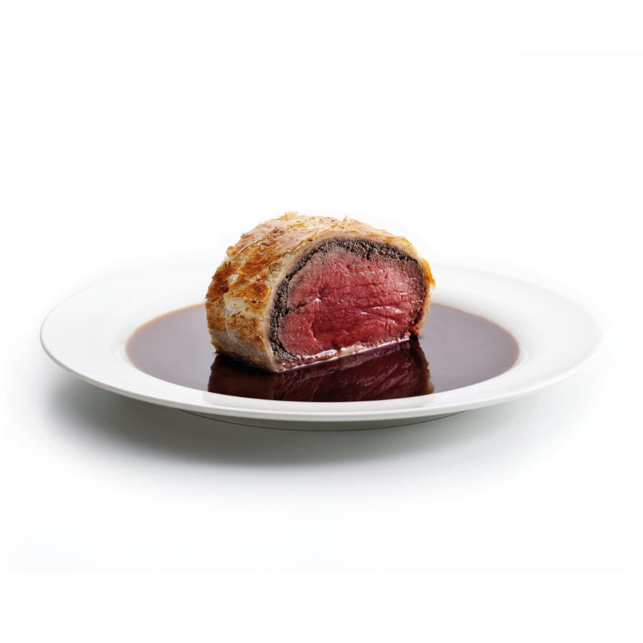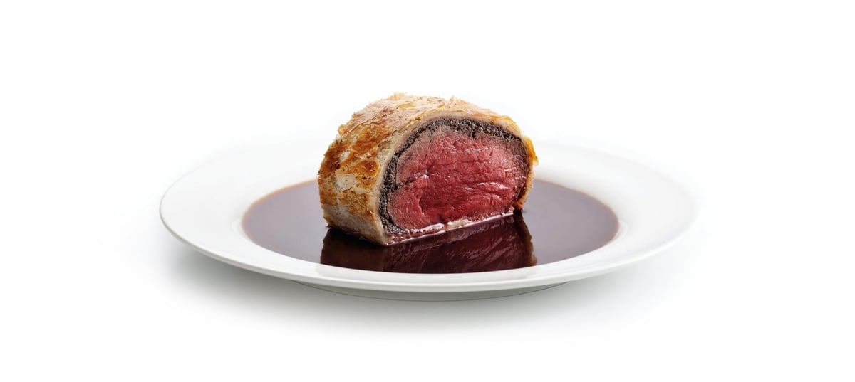 - 13Vychlazené maso položíme doprostřed těsta, zabalíme ho do něj a přebývající okraje těsta rádýlkem odřízneme. Znovu ho zabalíme do potravinářské fólie a velmi pevně utáhneme. Balíček necháme 1 hodinu vychladit v lednici. Poté vychlazené maso vybalíme z fólie.