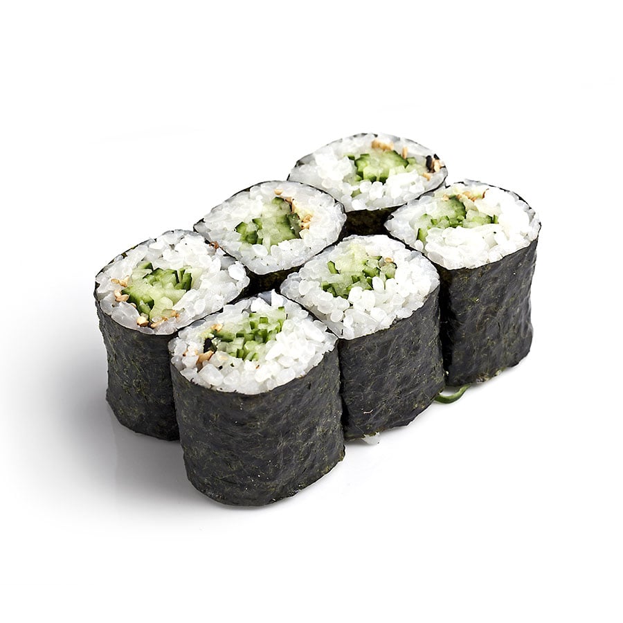 - 6Hosomaki rolku krájíme na 6 kusů. Nejprve celou roku překrojíme v polovině. Obě poloviny zarovnáme vedle sebe a dvakrát obě najednou překrojíme navlhčeným čistým nožem.