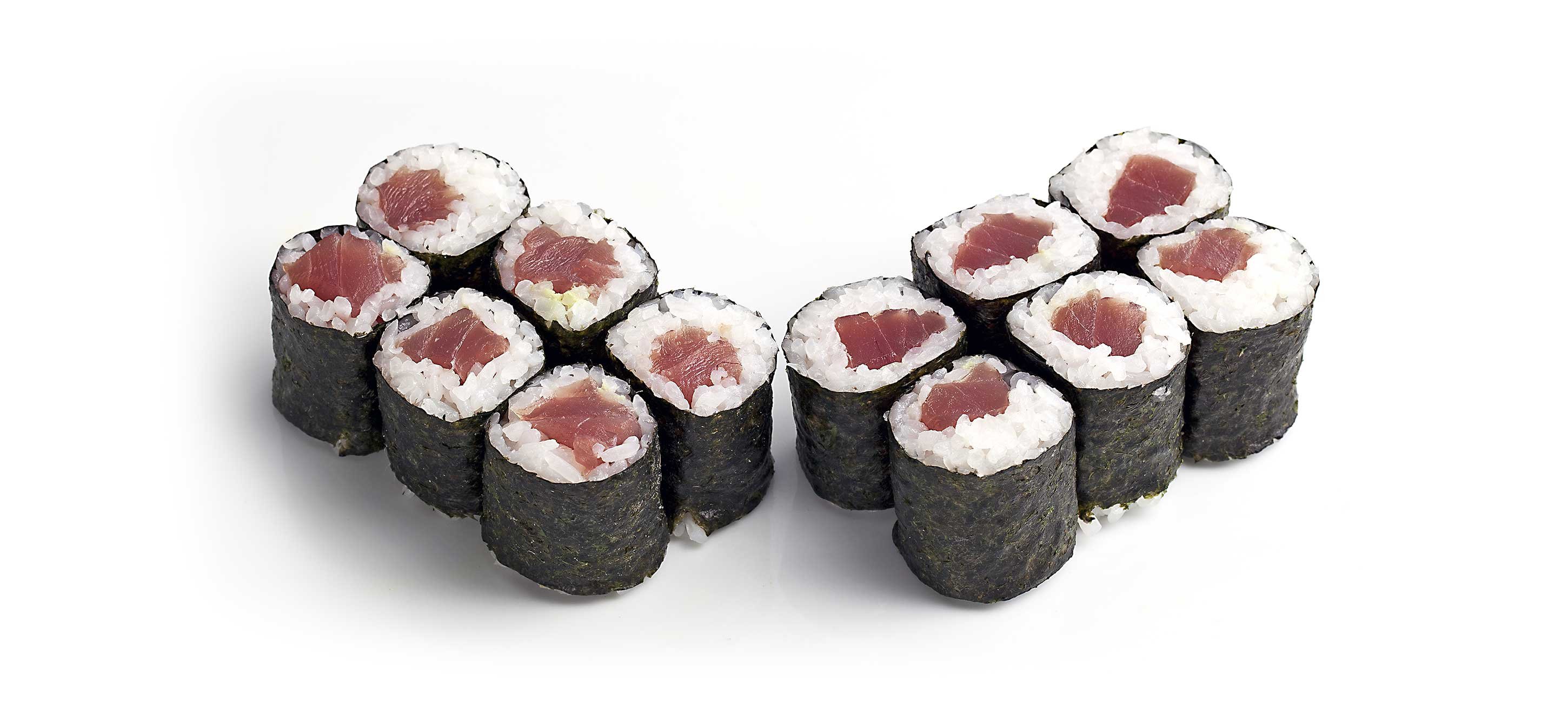 - 6Hosomaki rolku krájíme na 6 kusů. Nejprve celou roku překrojíme v polovině. Obě poloviny zarovnáme vedle sebe a dvakrát obě najednou překrojíme navlhčeným čistým nožem.