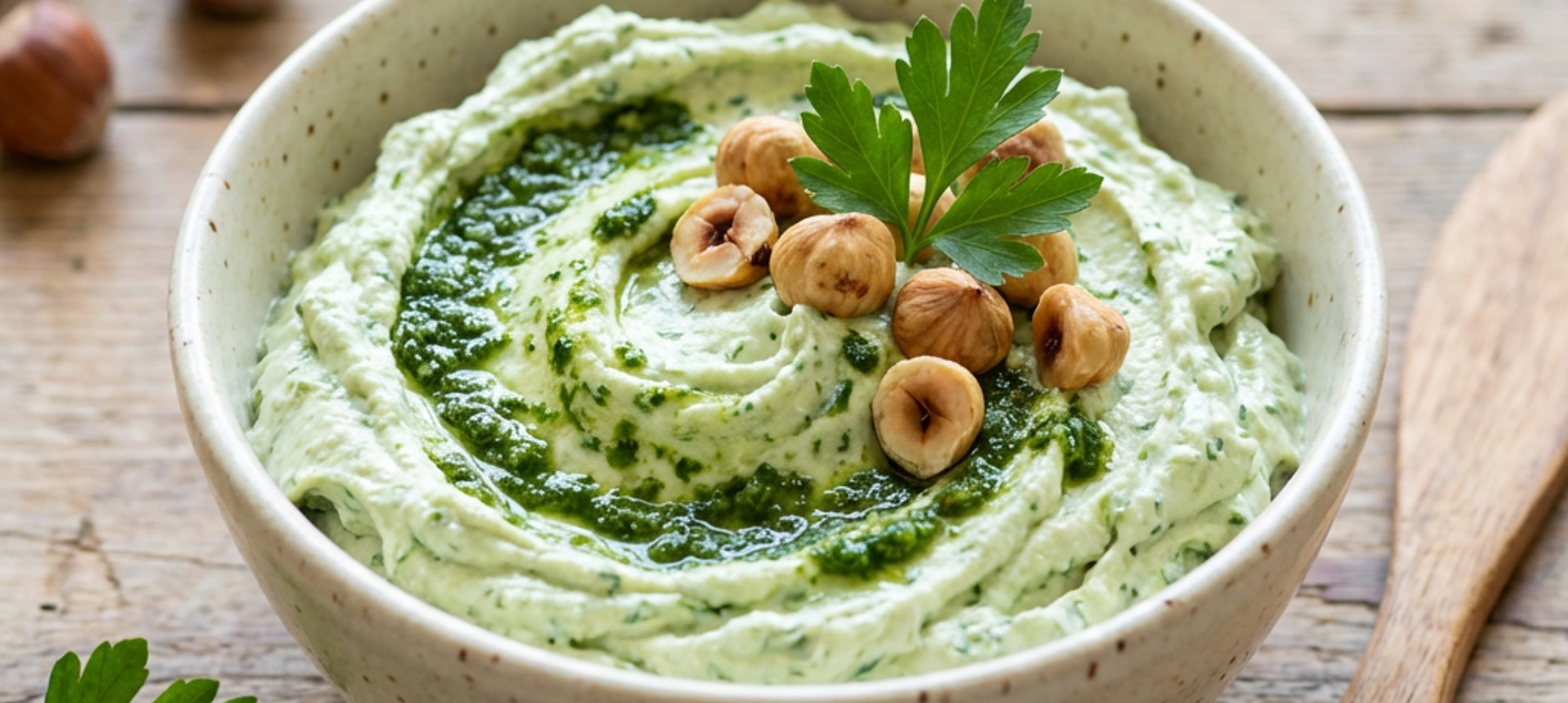 - 4V míse smícháme lučinu s mlékem, přidáme 70 g petrželového pesta a promícháme. Dochutíme solí, promícháme a dáme vychladit.