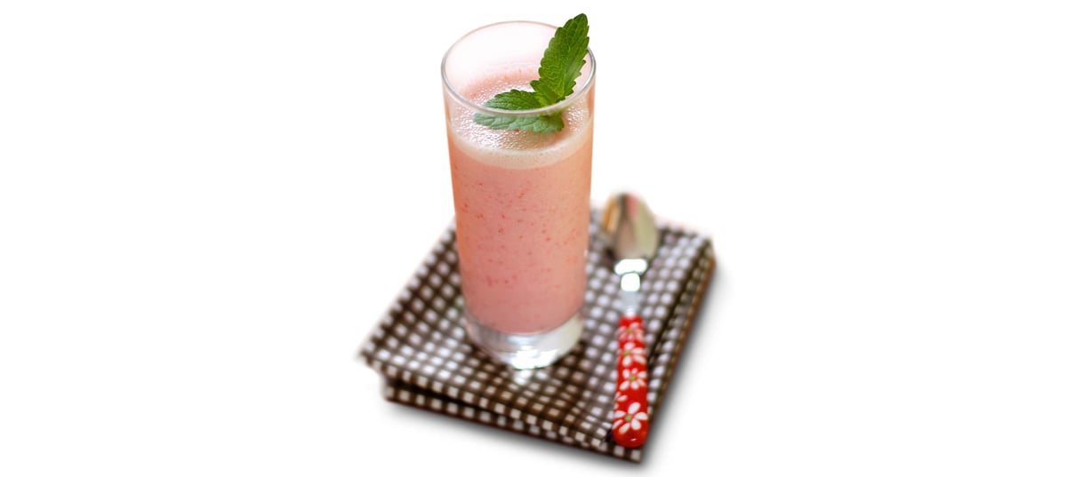 - 1Do mixéru vložte očištěné ovoce a jogurt, ochuťte medem a citronem. Přilijte 100 ml studené vody a vhoďte 3 kostky ledu. Rozmixujte dohladka a ihned podávejte.