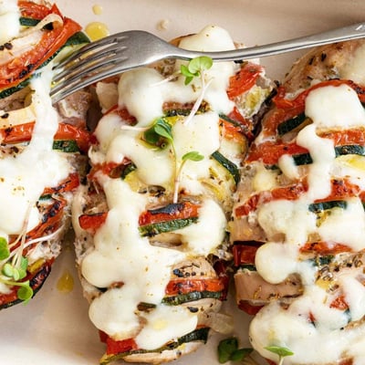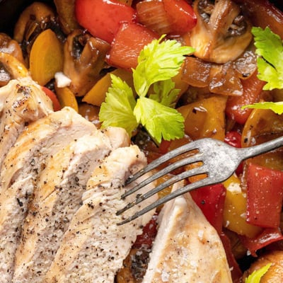 RecipesSearchJíme zdravě + Chicken and poultry meatAll categoriesDinnerBreakfast and snacksWe have 57 recipes for you.Jíme zdravěChicken and poultry meatHitChicken Breasts in Tomato Sauce with MozzarellaParmesan ChickenHealthy Ham and Pasta BakeChicken Salad with Avocado PestoChicken Breasts in Tomato Marinade with Chilli and Bulgur Salad with MintChicken Skewers with Peanut SauceBaked Sandwich with Cheese, Turkey Meat, and Cranberry DressingChicken with Potatoes and Cream SauceChicken Paprika with MilletChicken Schnitzel with Miso Paste and CorianderChicken with OrangesChicken Schnitzel in Almonds and HalloumiRoasted Turkey Thigh with Carrots and Carrot TopsChicken Mix with Turmeric and Coconut MilkOne-Pan Chicken with VegetablesFestive Chicken Roulade with Prosciutto, Parmesan, and SpinachChicken Casserole with Broccoli and RiceChicken PrimaveraPilaf from Chicken ThighsChicken Mix with Balsamic VinegarChicken Breasts with Mushrooms and Peppers in a Sour SauceBaked Zucchini with Ground MeatChicken Nuggets with Coleslaw SaladEggplant and Zucchini Moussaka with Rice