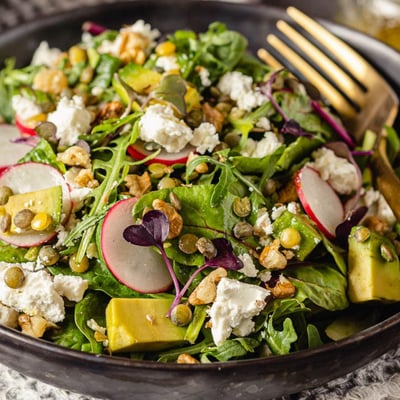 RecipesSearchHealthy recipes + Salads + Vegetarian recipesAll categoriesLegumesWe have 36 recipes for you.Healthy recipesSaladsVegetarian recipesCucumber saladLentil salad with feta cheeseWatermelon salad with feta cheeseBeetroot Salad with Goat CheeseVegetable cassouletCouscous with chickpeas and tomatoesFennel salad with orangeFruit Salad with Gorgonzola CheeseWarm Lentil Salad with Roasted PumpkinBrussels Sprout Salad with Blue Cheese and AlmondsAsparagus Salad with Eggs and Honey-Mustard DressingBuddha Bowl with Hummus and Roasted TofuKale Salad with Pecans and Goat CheeseQuinoa with Red BeetrootBlack Lentil SaladQuick Chickpea SaladSalad with Lentils and RadishesSom TumPapaya SaladBulgur Salad with Feta CheesePasta SaladLentil SaladChilli SaladGreen Goddess Salad