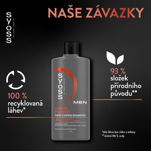 Šampon pro muže Syoss Power & Strength je určený pro normální vlasy, které posiluje a oživuje. Jeho vysoce účinná receptura osvěžuje vlasy i pokožku hlavy.