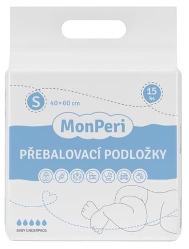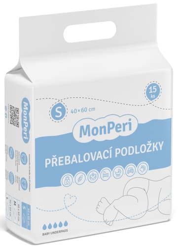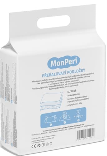 Jednorázové ekologicky šetrné absorpční podložky značky Monperi.