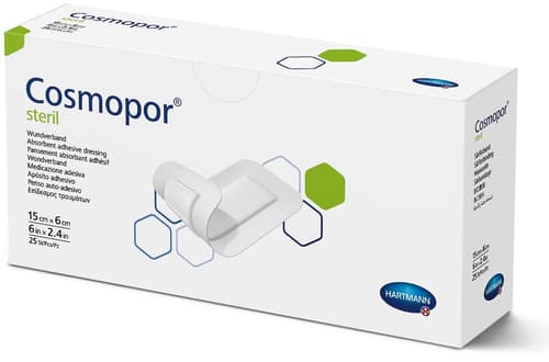 Zdravotnický prostředek. Cosmopor steril představuje krytí na rány s hydrofobní mikrosíťkou proti přilepení. Mikrosíťka tvoří vrstvu přiléhající k ráně a zabraňuje přilepení krytí k ráně. Absorpční polštářek se velmi rychle přizpůsobuje křivkám těla. Sterilní verze.
