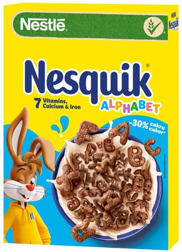 Nestlé NESQUIK Alphabet cereals are fun, alphabet-shaped pieces with a delicious cocoa flavor, perfect for a great start to the day. They're packed with essential vitamins and minerals and contain 30% less sugar than regular kids' cereals. You get a 325g pack.