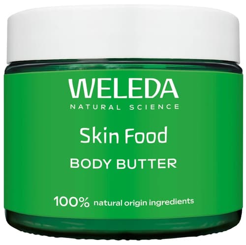 Weleda Skin Food body butter offers luxurious care with organic shea and cocoa butter. It calms dry skin, intensely nourishes, and leaves it feeling soft. Featuring a natural fragrance of sweet oranges, lavender, and benzoin, it provides long-lasting hydration without feeling greasy. This certified natural cosmetic from Germany comes in a 150 ml pack.