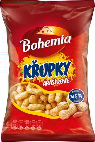 Křupavý arašídový slaný snack, vyráběný v tradiční Hradecké továrně s dlouholetou historii.